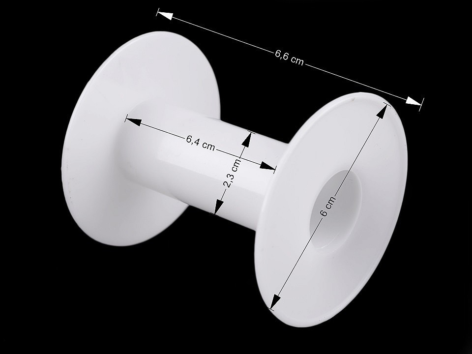 Plastová cívka je vhodná k namotávání provázků, stuh, prýmků apod. Uprostřed má dírku o průměru 21 mm. Můžete ji navléknou na tyč či provázek.