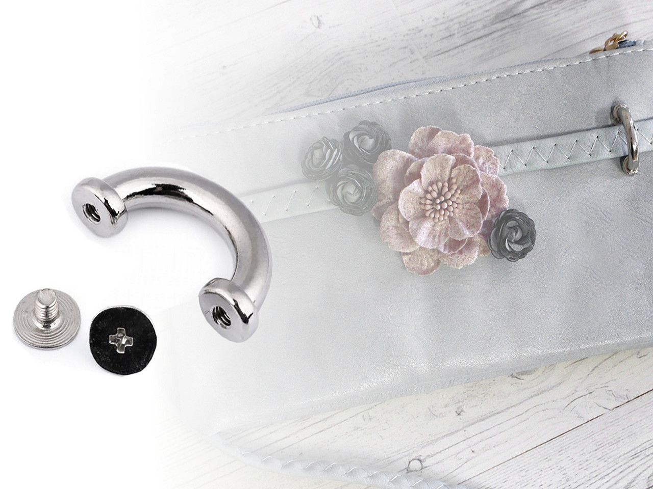 Kovový průvlek ozdobí kabelky, tašky, batohy či opasky (z koženky, eko kůže, kůže a z hrubších materiálů). Připevňuje se pomocí dvou šroubků.