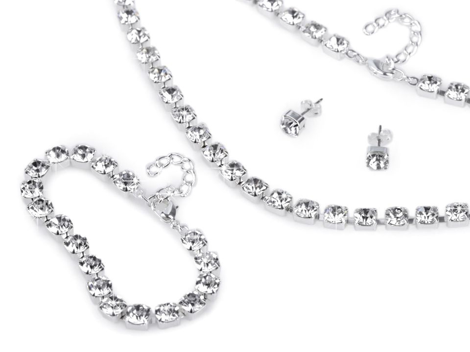 Luxusní štrasovou soupravu z celosvětově proslavené jablonecké bižuterie, využijete ke slavnostním příležitostem jako jsou plesy, svatby, večírky, návštěvy divadel, vernisáží apod. Je osázena skleněnými třpytivými kamínky velkými 6 x 6 mm, které mají díky brusu nádherné oslnivé odlesky. Není mnoho šperků, které by zdůraznily ženskost tak snadno jako štrasová bižuterie.