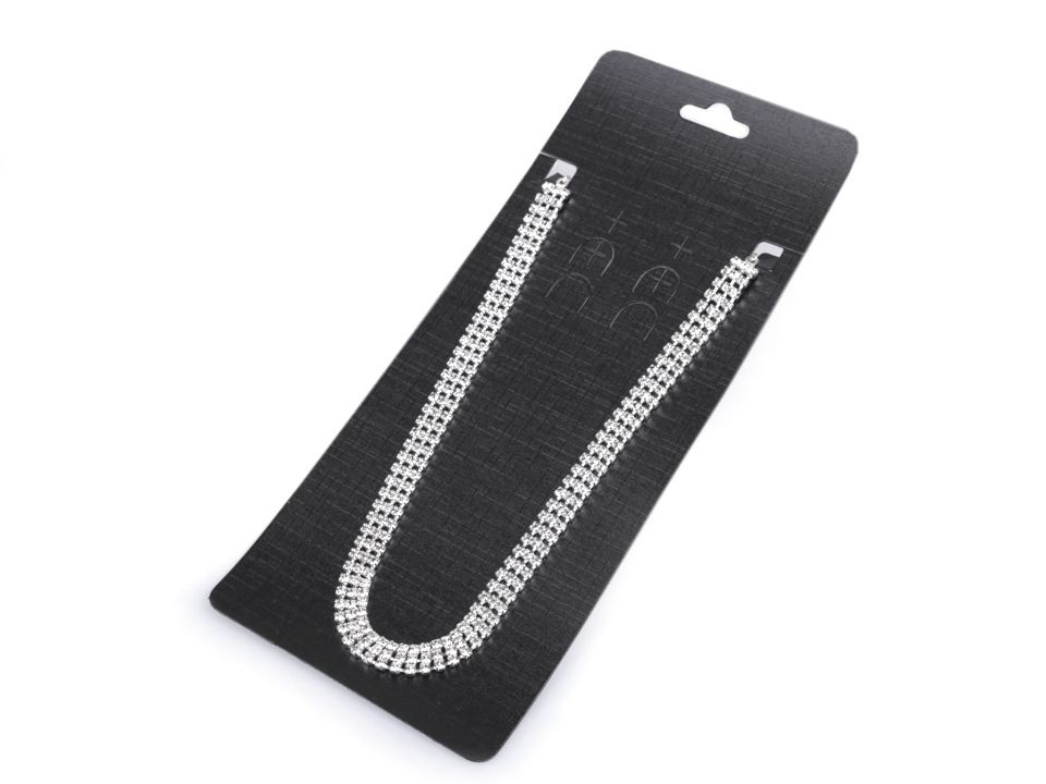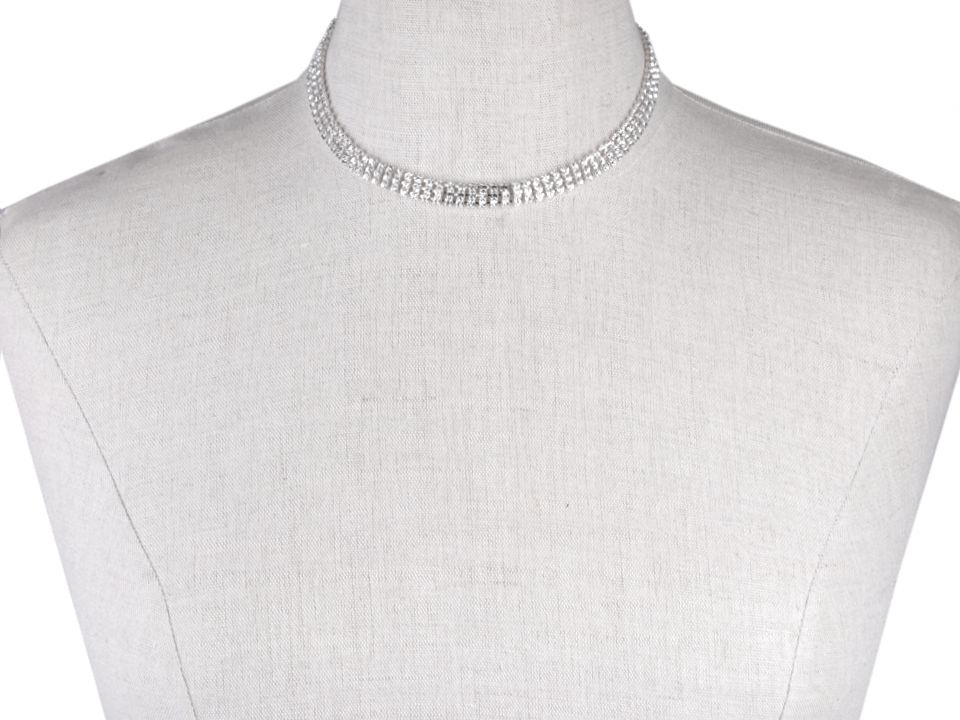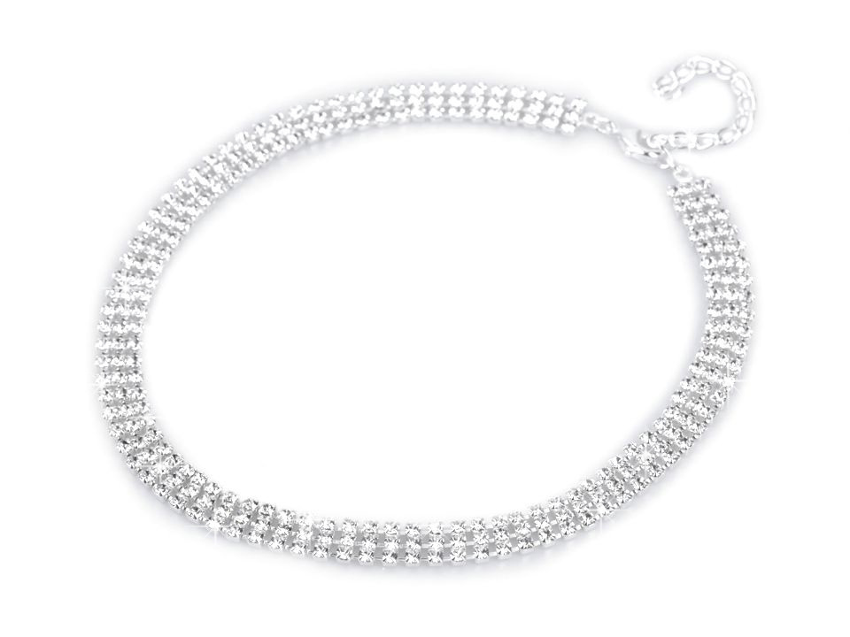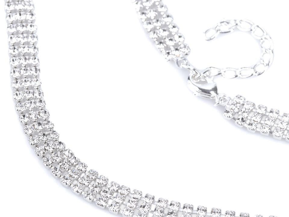 Elegantní třířadý štrasový náhrdelník zdobí vsazené třpytivé kamínky, díky kterým působí velmi luxusně. Tento šperk z celosvětově proslavené jablonecké bižuterie využijete pro slavnostní příležitosti jako jsou rodinné oslavy, plesy, svatby, návštěvy divadel apod.