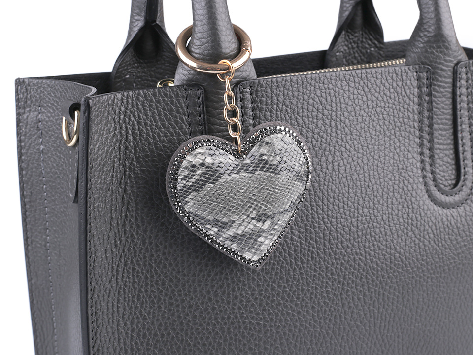 Součástí každé kabelky je odnímatelná ozdoba / klíčenka s kulatou karabinou.