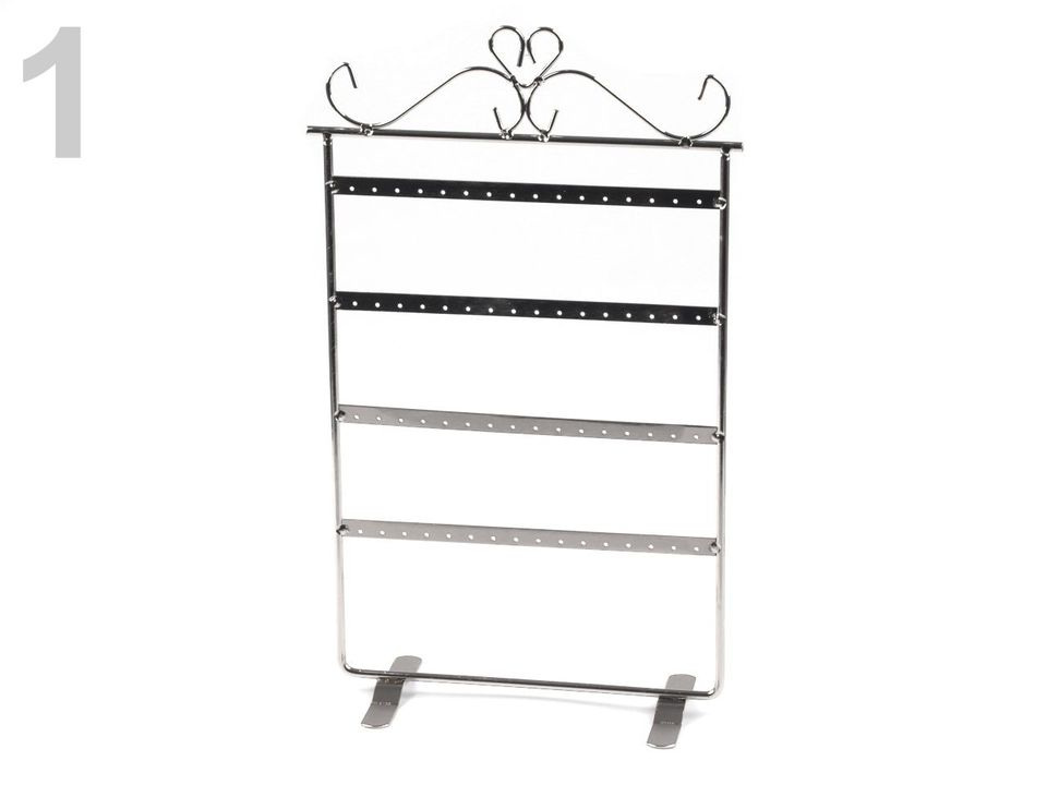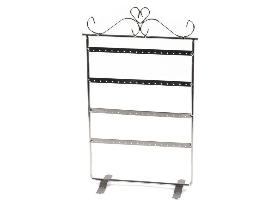 Náušnicový stojan do vaší prodejny či galerie pro efektní prezentaci náušnic. Je vhodný pro každou dámu, která má doma nepřebernou sbírku náušnic a chce je uchovat trvale jako nové a přehledně uspořádané. Stojan je stabilní, nebude se kácet ani při velkém počtu zavěšených náušnic. Na stojan se vám vejde 32 párů doplňků. Jednotlivé řady jsou od sebe vzdáleny 52 mm, od středu dírky po střed další dírky 62 mm.