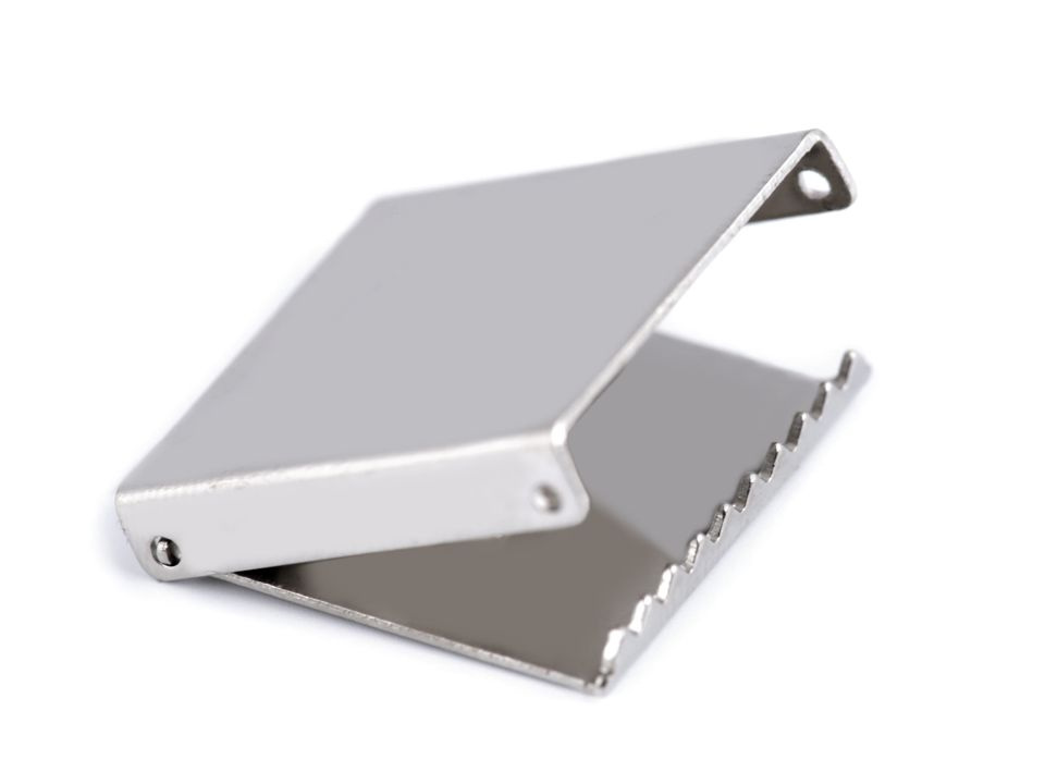 Kovová koncovka je vhodná na zakončení plochých šňůrek (do mikin, tepláků apod.). Díky zoubkům perfektně drží. Jednoduše ji zamáčknete prsty.