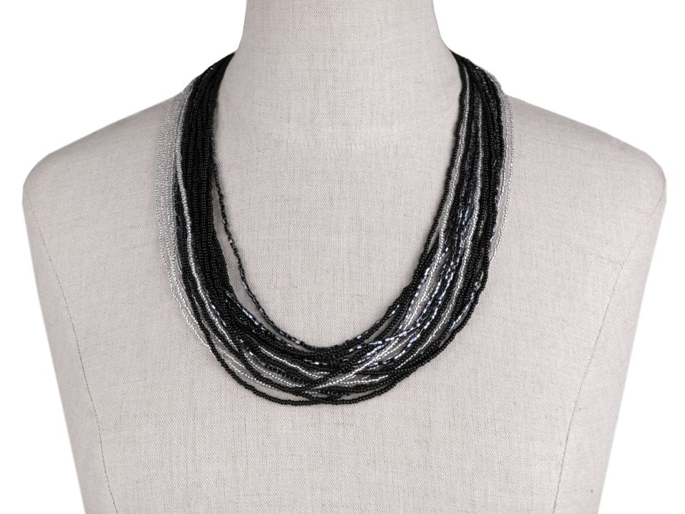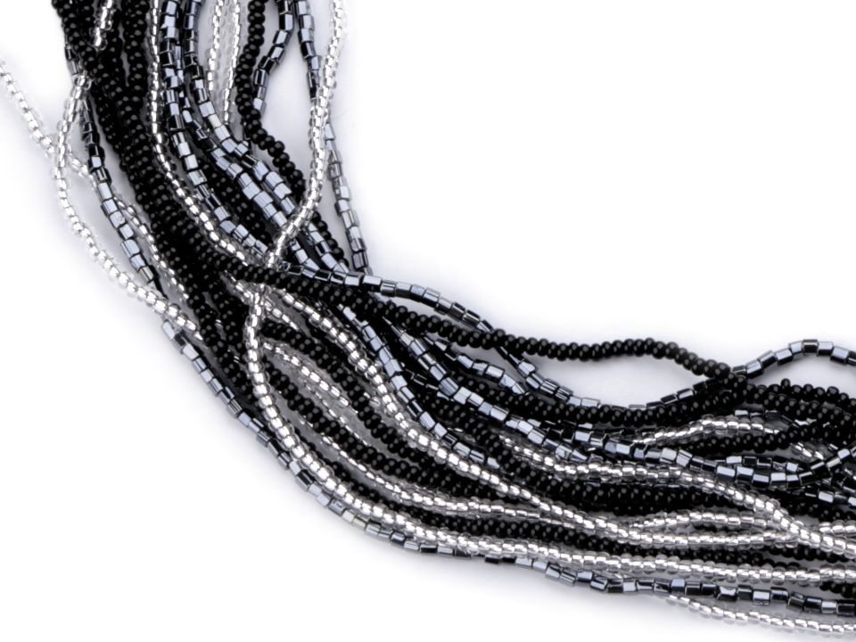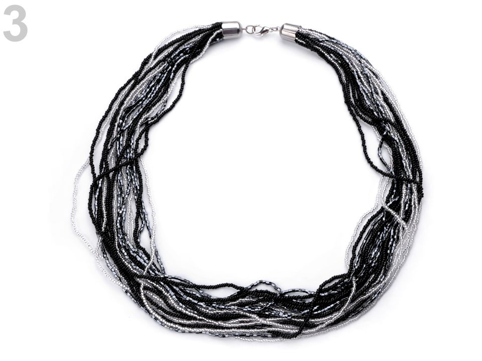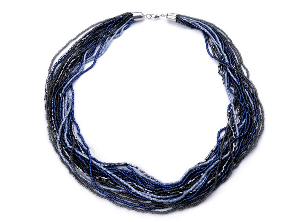 Luxusní víceřadý náhrdelník z rokajlu od českých sklářů patří mezi špičkové šperky s ověřenou kvalitou. Je vhodný ke slavnostním přiležitostem jako jsou plesy, večírky, party apod. Působí bohatým dojmem, je z 18 řad různého rokajlu. Některé řady se oslnivě třpytí, díky nim je náhrdelník velice poutavý. Do sady s náhrdelníkem si můžete koupit náušnice.