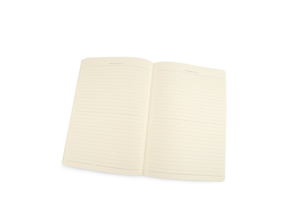 Uvnitř najdete 44 stránek linkovaného papíru s klasickou roztečí linek 8 mm. Na horní a dolní lince jsou naznačené tečky s roztečí 1 cm. Umožňují dokreslení svislých linek bez složitého rozměřování, což ocení zejména milovníci plánovacích diářů.