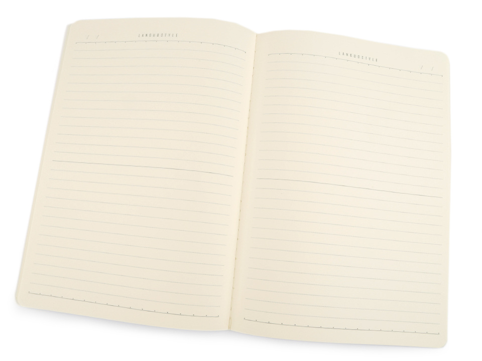 Uvnitř najdete 84 stránek linkovaného papíru s klasickou roztečí linek 8 mm. Na horní a dolní lince jsou naznačené tečky s roztečí 1 cm. Umožňují dokreslení svislých linek bez složitého rozměřování, což ocení zejména milovníci plánovacích diářů.