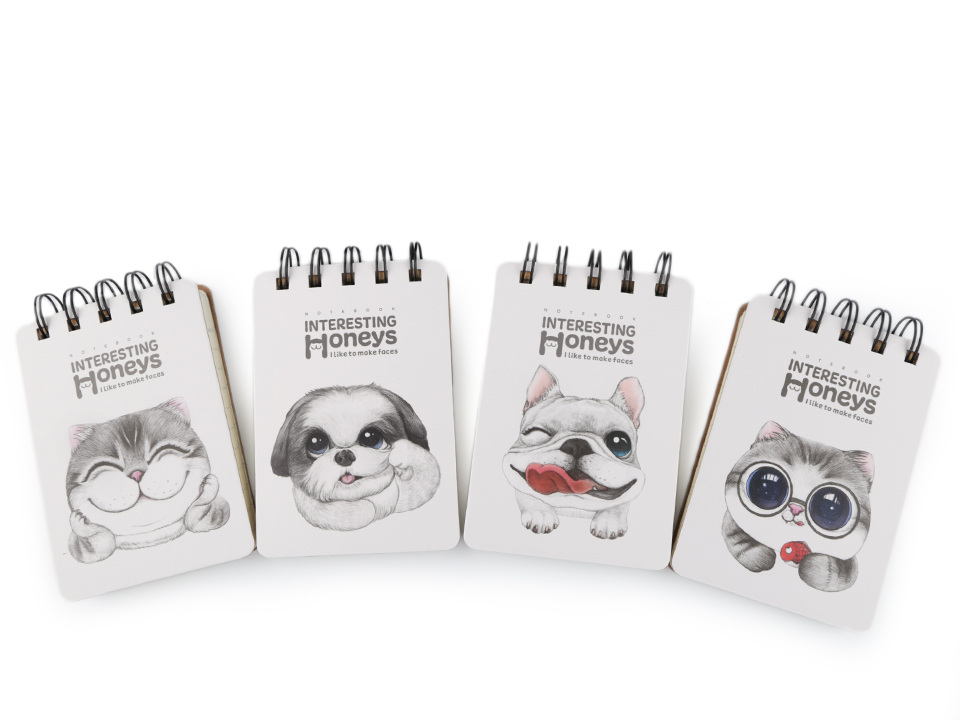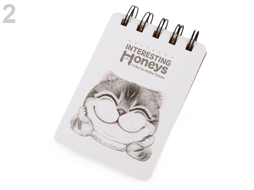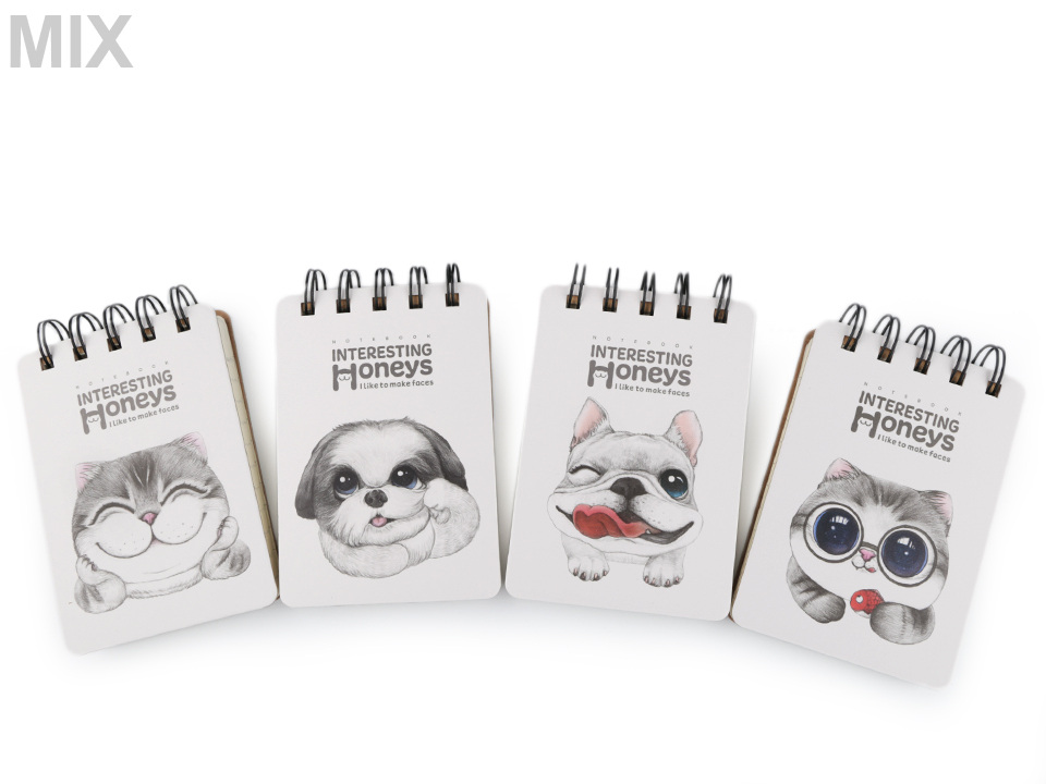 Malý zápisník velikosti A7 si zamilujete díky roztomilému motivu zvířátek na jeho hladkých pevných deskách. Zápisník má kroužkovou vazbu, uvnitř najdete 110 listů linkovaného papíru s klasickou roztečí linek 8 mm.
