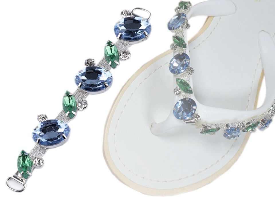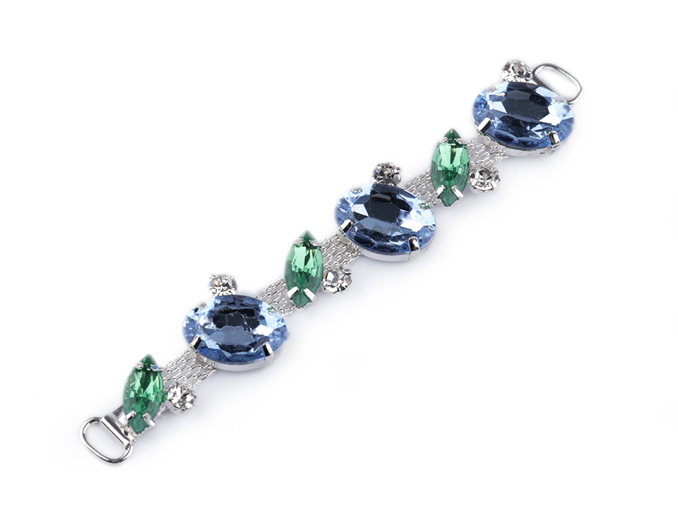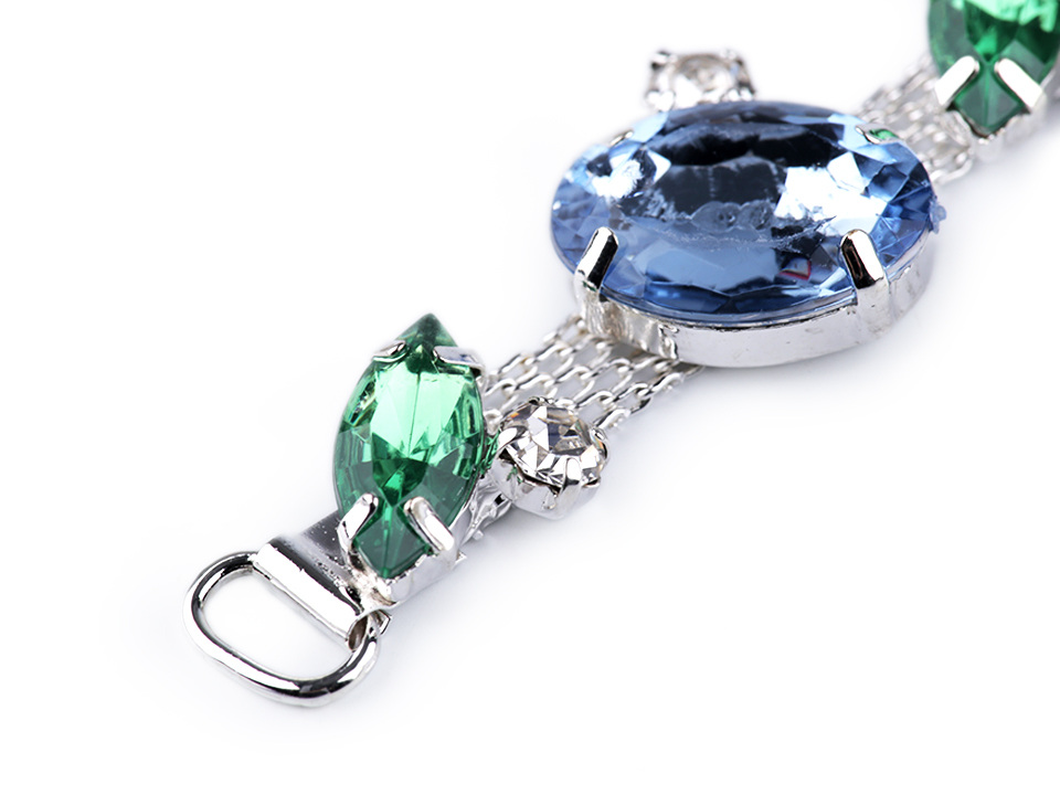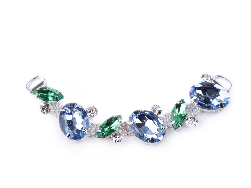 Ozdoba působí luxusně a elegantně díky třpytivým kamínkům. Ozdobí vám boty, tašky, psaníčka i doplňky. Je vhodná také na koženou galanterii. Ozdoba má na obou stranách očka umožňující snadné přišití k materiálu.