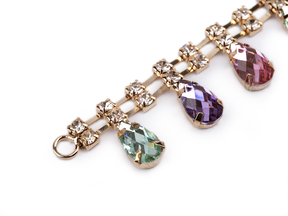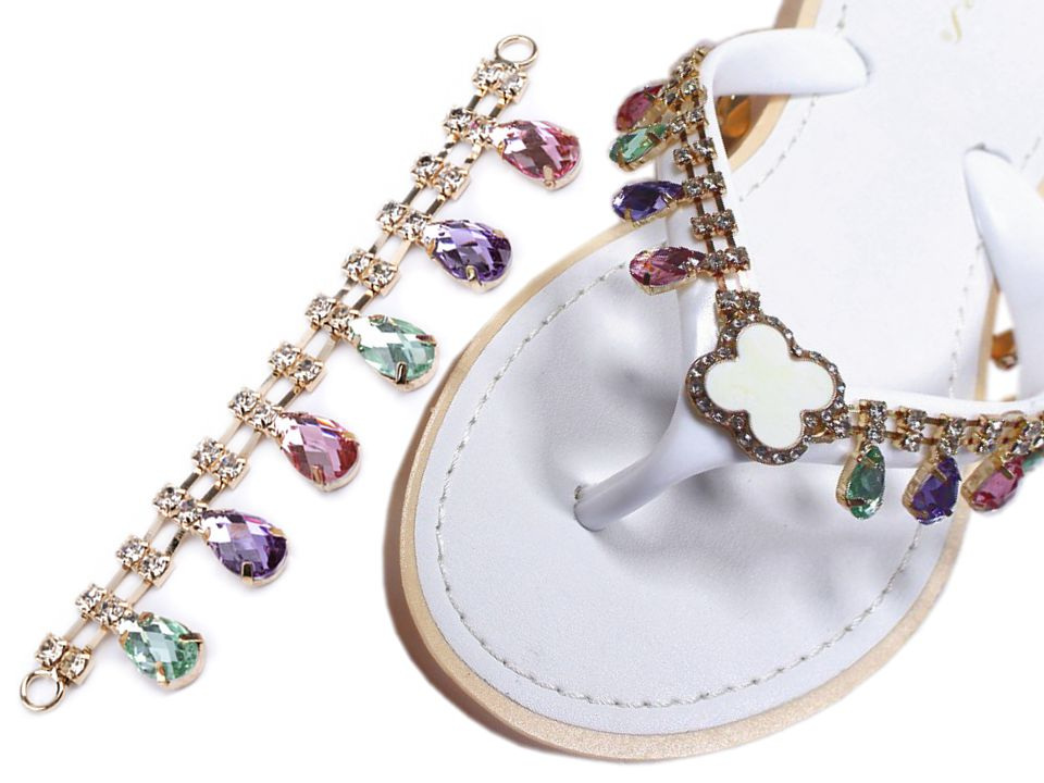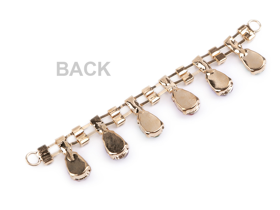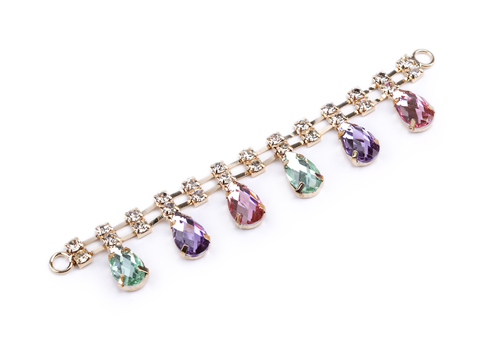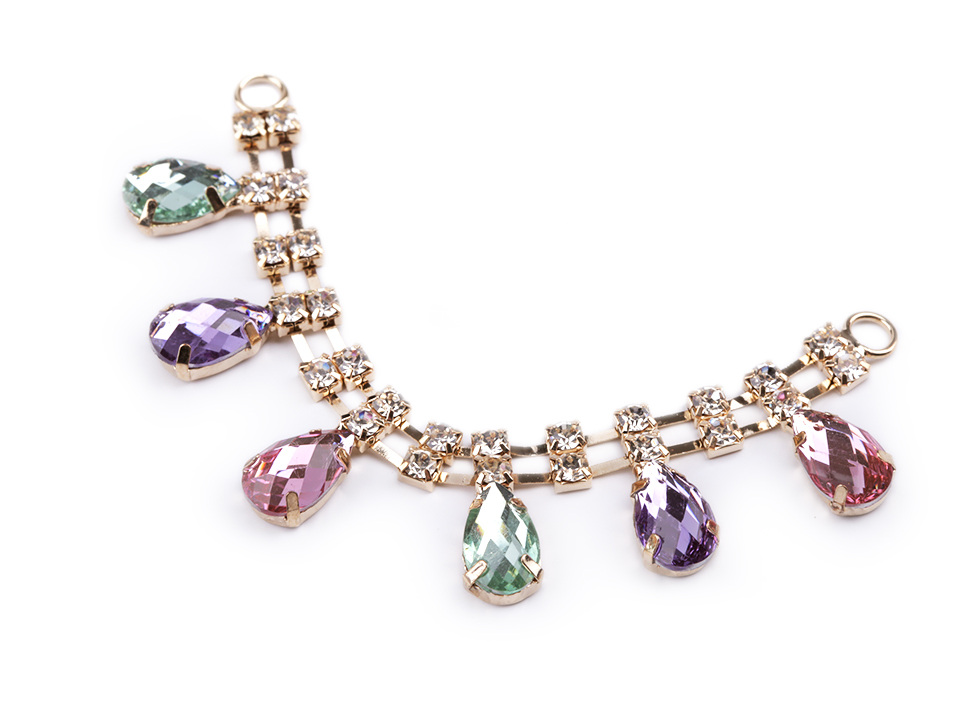 Třpytivá ozdoba jedinečně ozdobí vaši obuv. Je vhodná také na psaníčka, kabelky, klobouky apod. Ozdoba je vhodná k přišití díky očkám na obou stranách.
