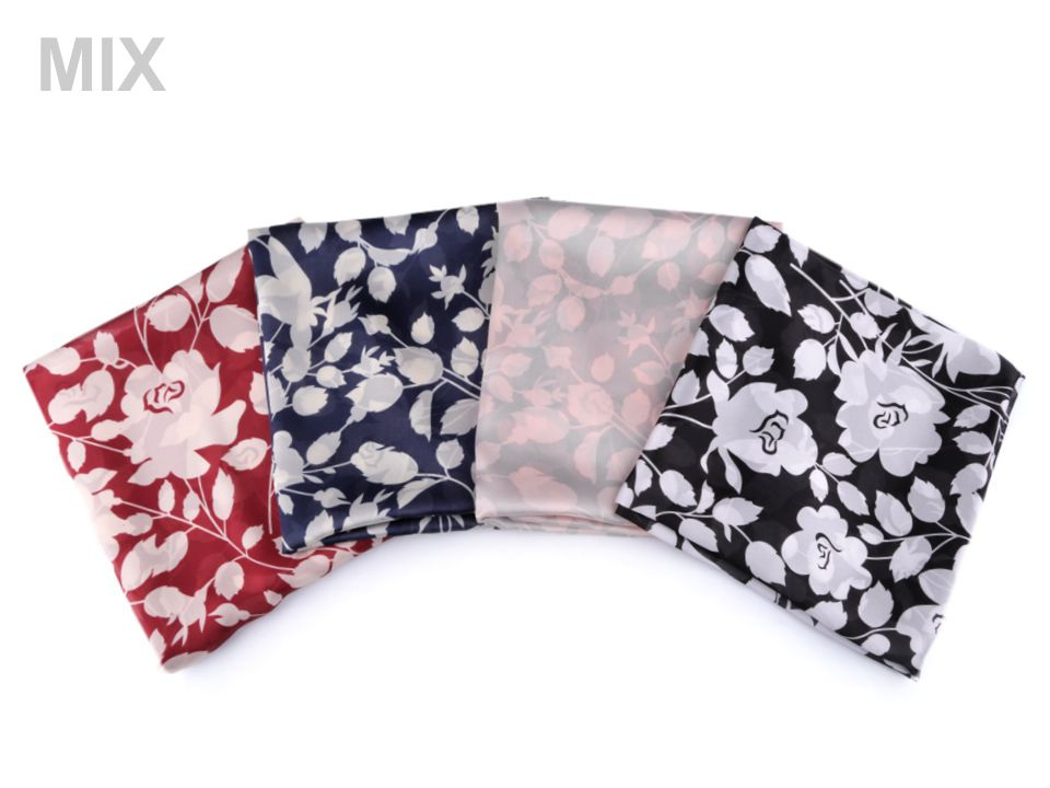 Dámský saténový šátek se záplavou růží se hodí do společnosti i na všední nošení ke kabátu, saku, halence, svetříku, šatům apod. Je lehounký, měkký, velice příjemný na dotek. Potěší všechny ženy, které mají rády estetické doplňky.