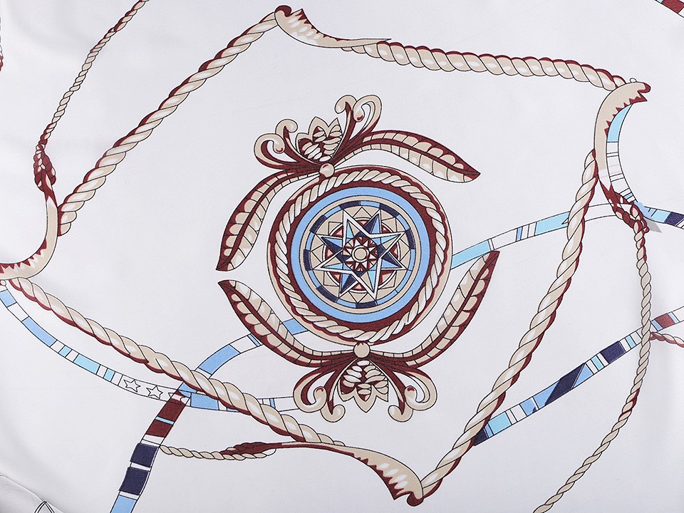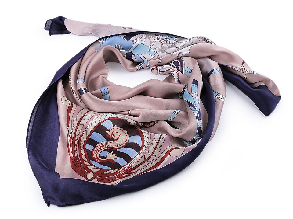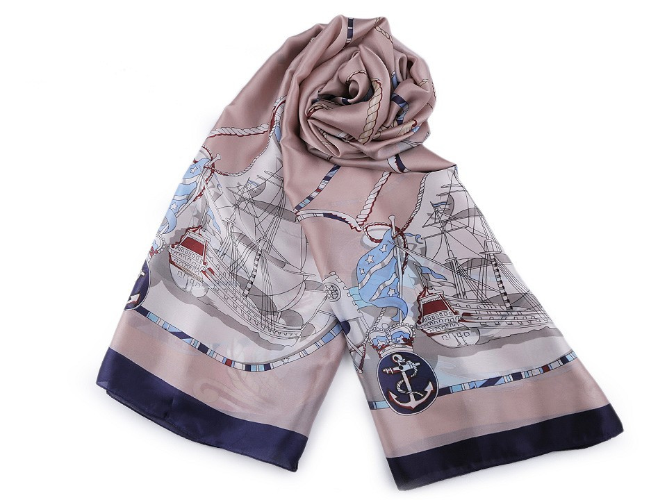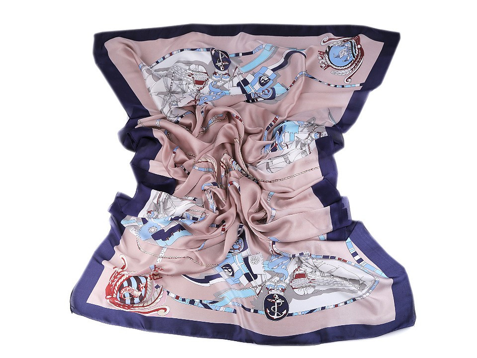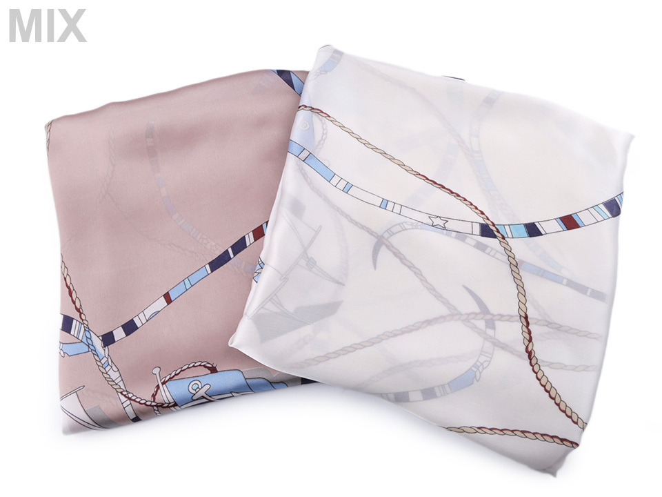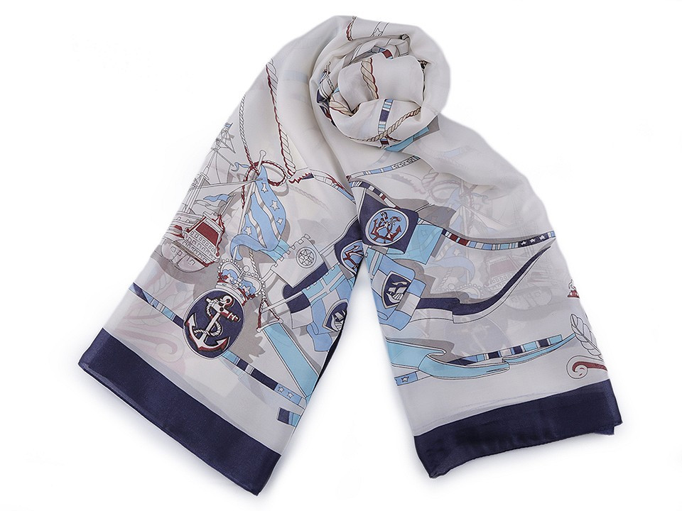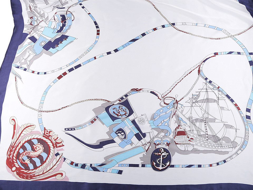 Saténový šátek s námořnickými motivy navozuje atmosféru dovolené u moře.