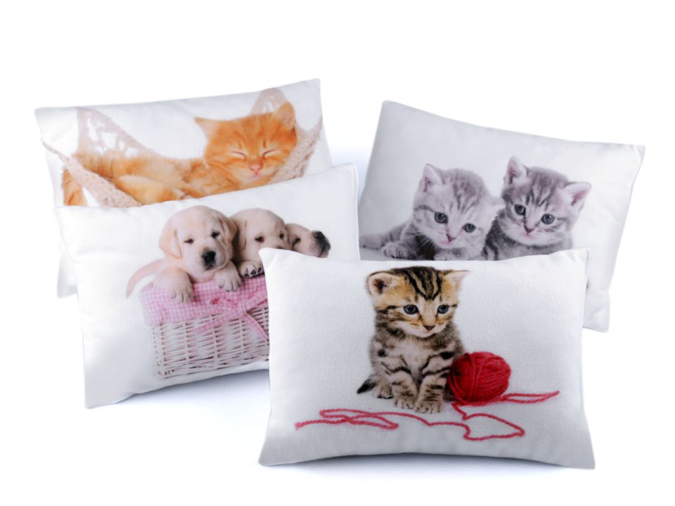 Malé polštářky s roztomilým fototiskem koťátek a štěňátek mají jemný mikroplyšový povrch. Jsou měkké, skvěle doladí gauče či dětské postele. Potisk je jednostranný.