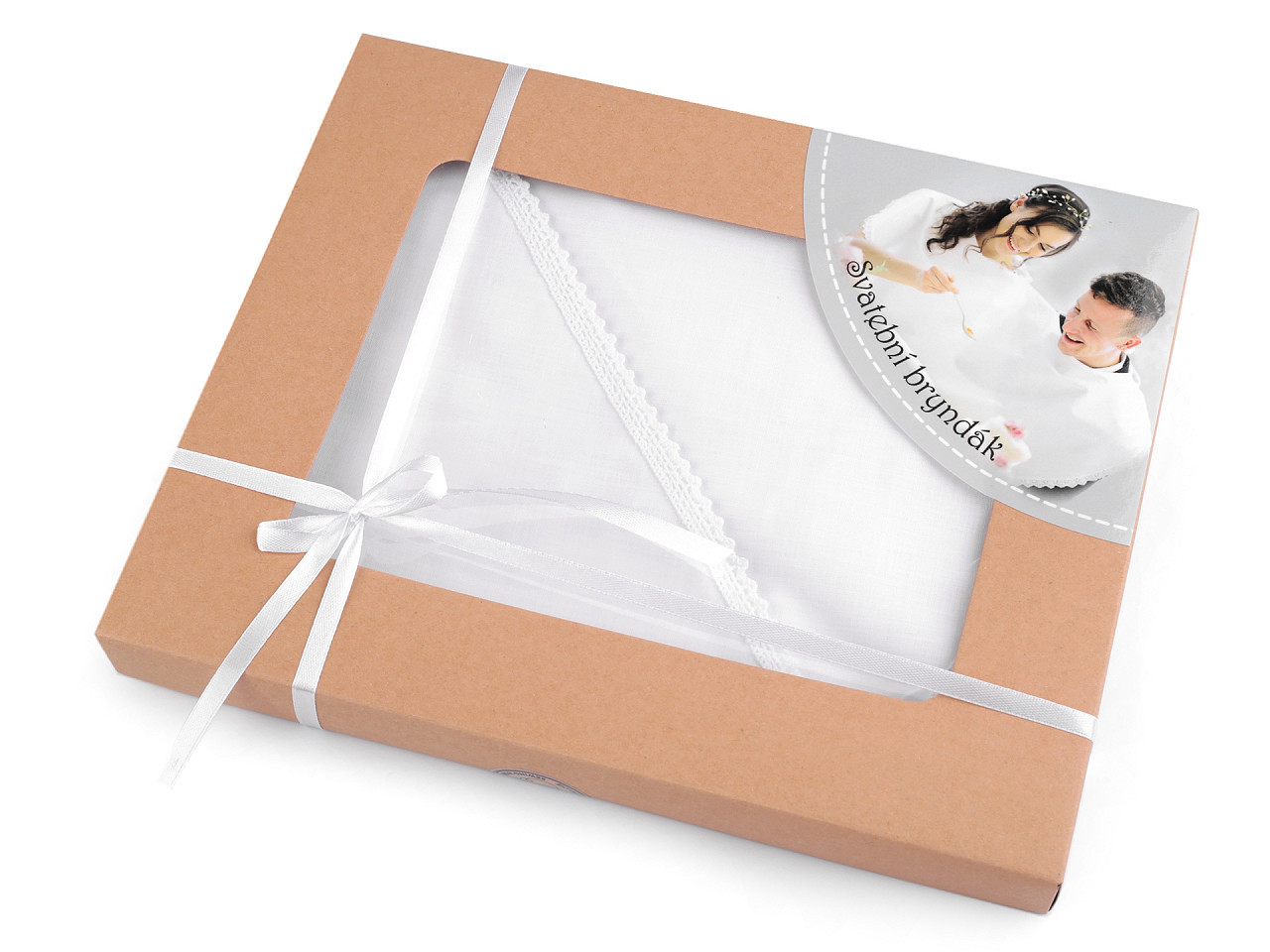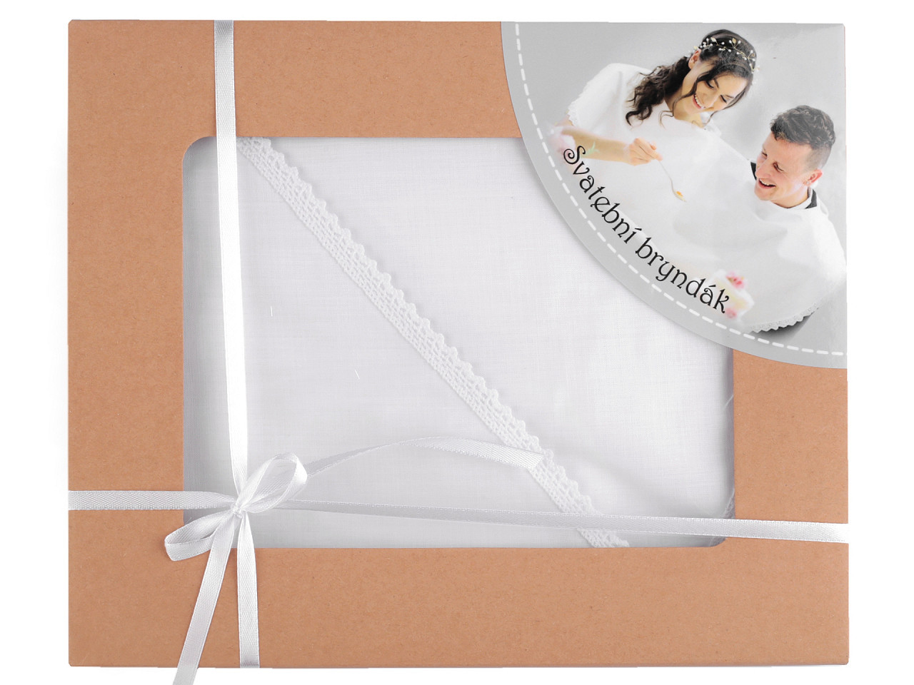 Svatební bryndák ocení novomanželé při prvním společném obědě. Lemuje ho romantická paličkovaná krajka. Bryndák můžete ještě dozdobit dle svého vkusu.