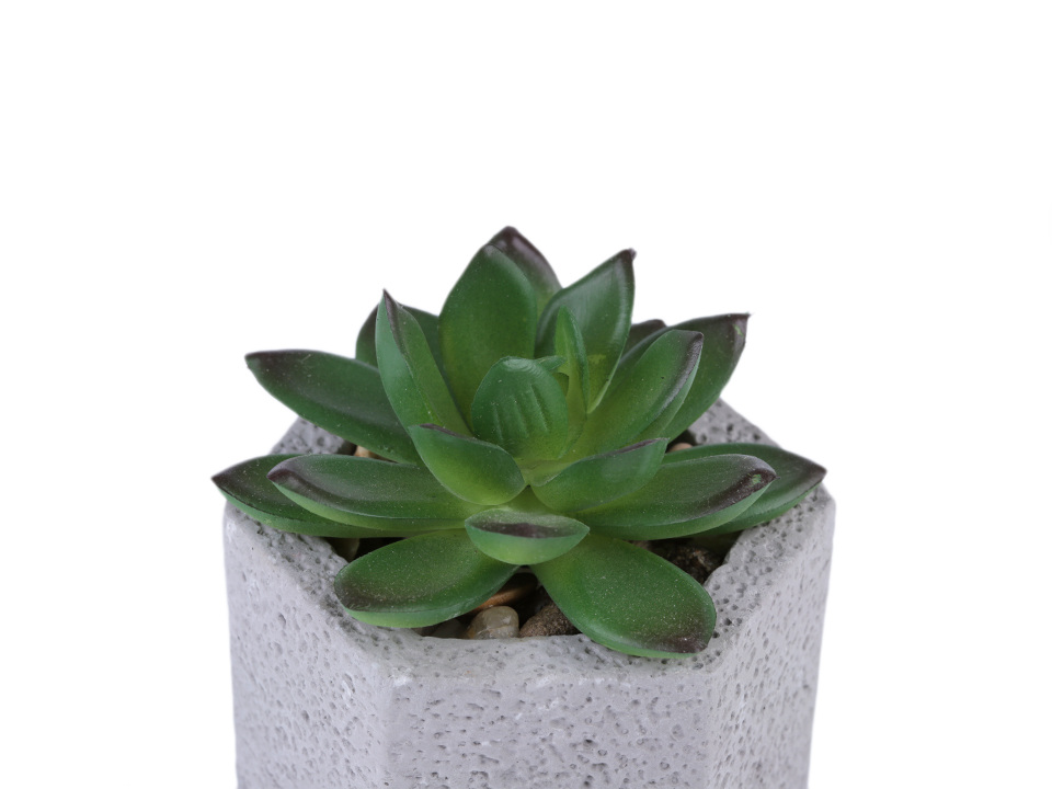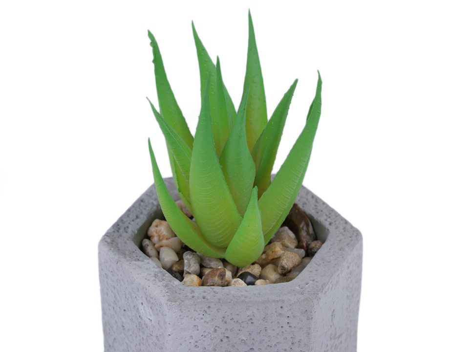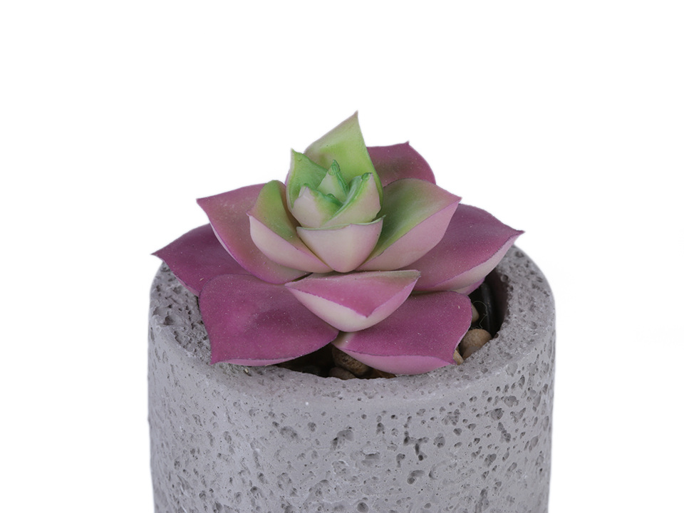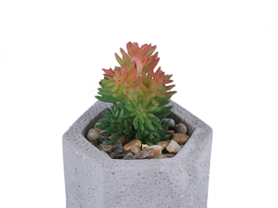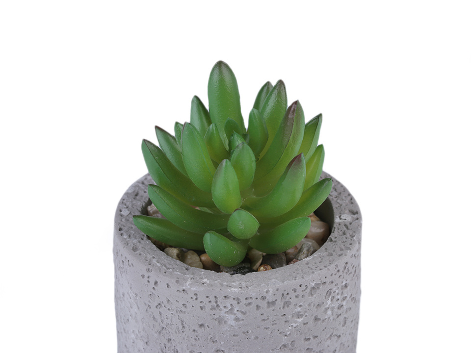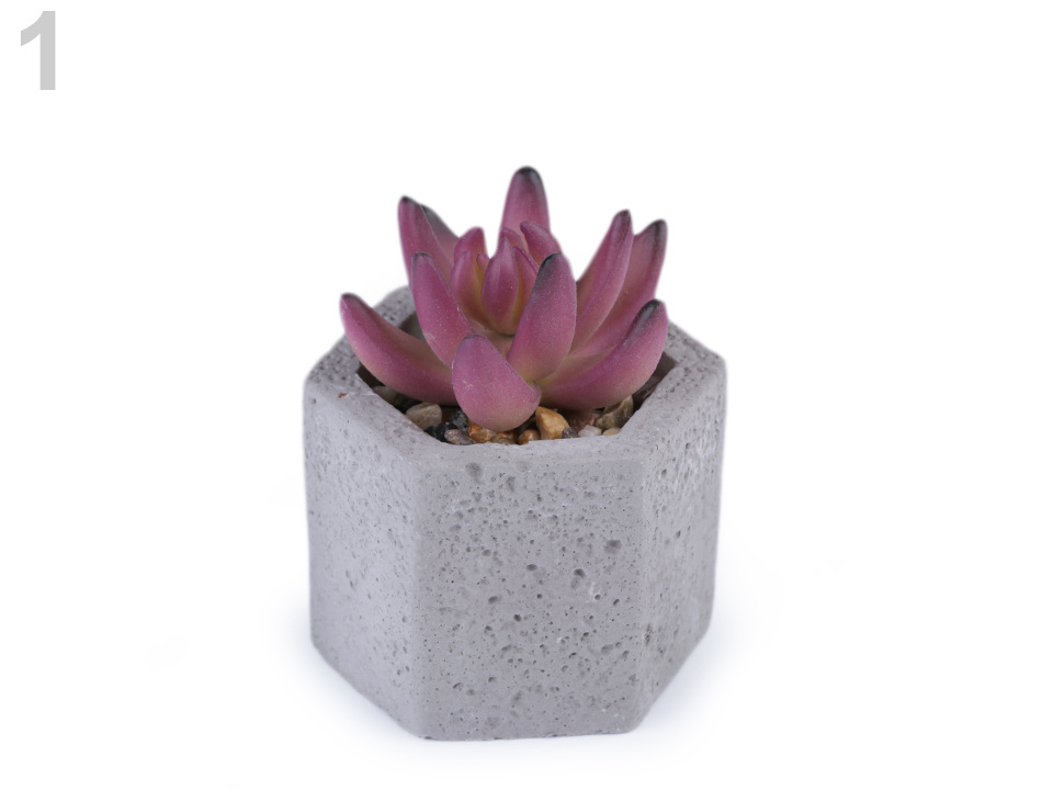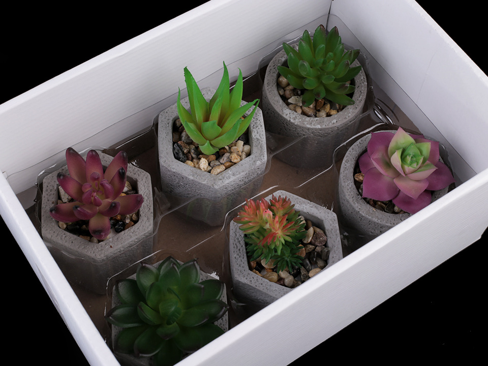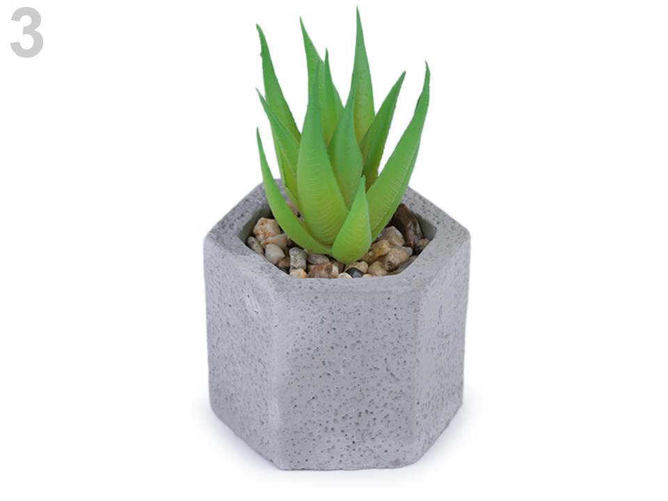 Umělé sukulenty jsou ve stylovém betonovém květináči. Vnitřní část květináče je pokryta přírodními kamínky. Sukulenty věrně kopírují svou živou předlohu. Můžete je mezi sebou vzájemně kombinovat. Doladí jakýkoli interiér.