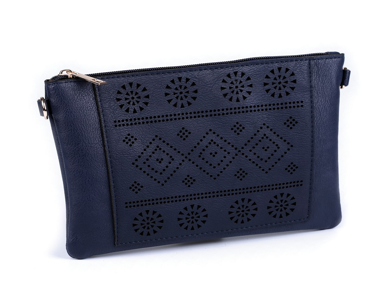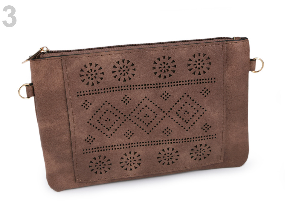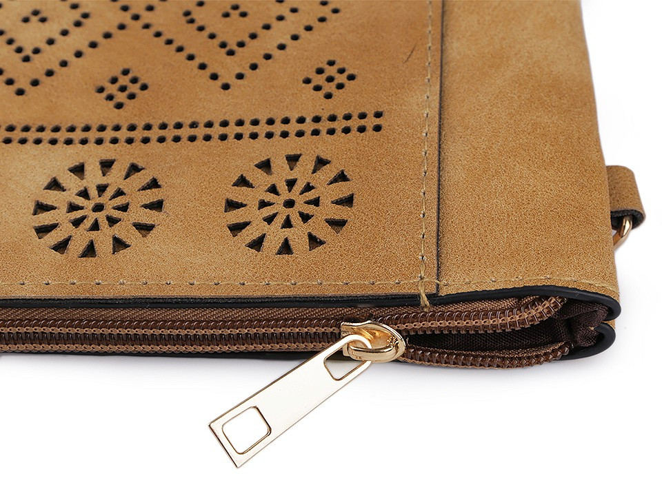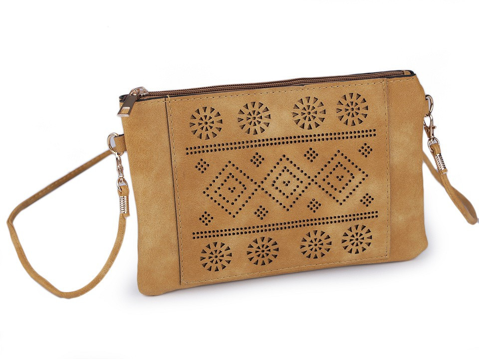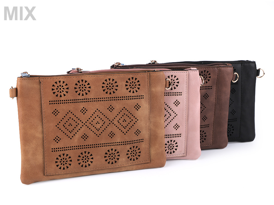 Malou kabelku z eko kůže si na první pohled zamilujete. Její přední stranu zdobí vysekávaný vzor s geometrickými tvary. Součástí kabelky je odnímatelný popruh o délce 140 cm, umožňující pohodlné nošení kabelky na rameni.