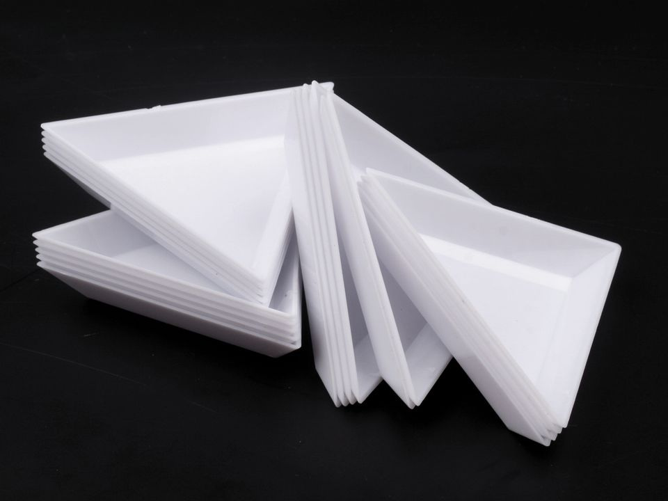 S touto báječnou pomůckou se nebudete muset trápit s pracným nabíráním a vysypáváním korálků. Konec kutálení perliček a jejich zašlapávání do koberce. Trojúhelníkový tvar těchto mističek je praxí ověřen jako naprosto nejvhodnější pomůcka pro každého, kdo pracuje s hot fix, korálky či jakýmikoli jinými drobnými předměty.