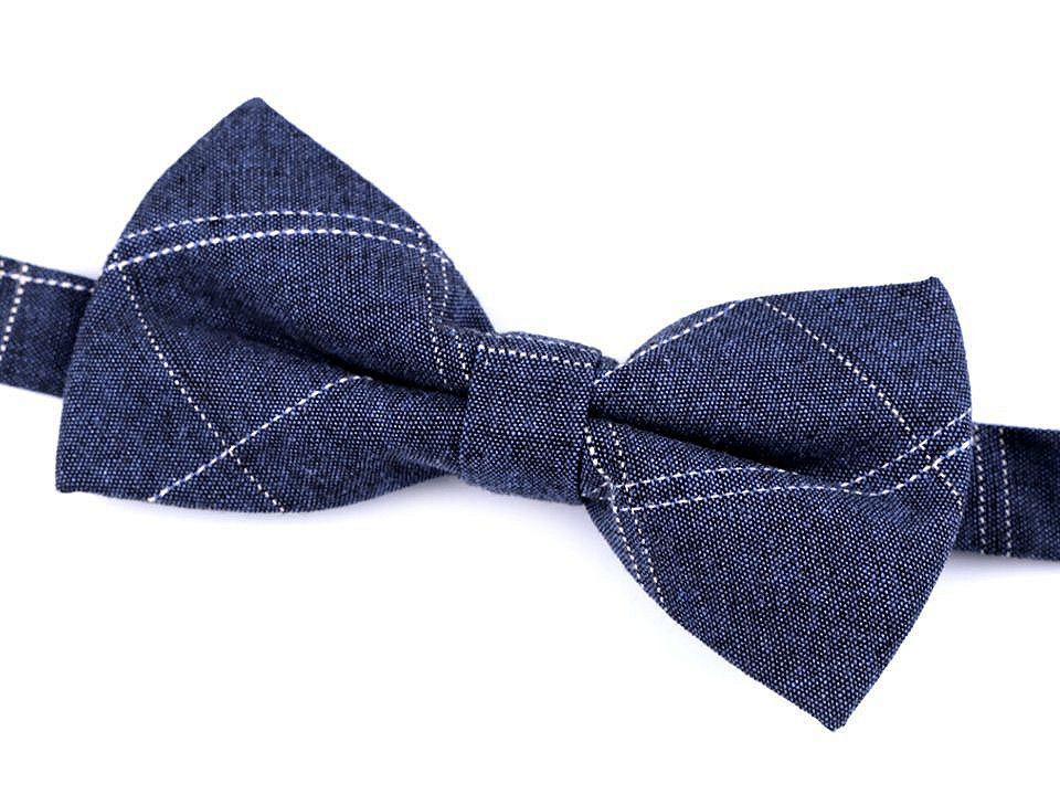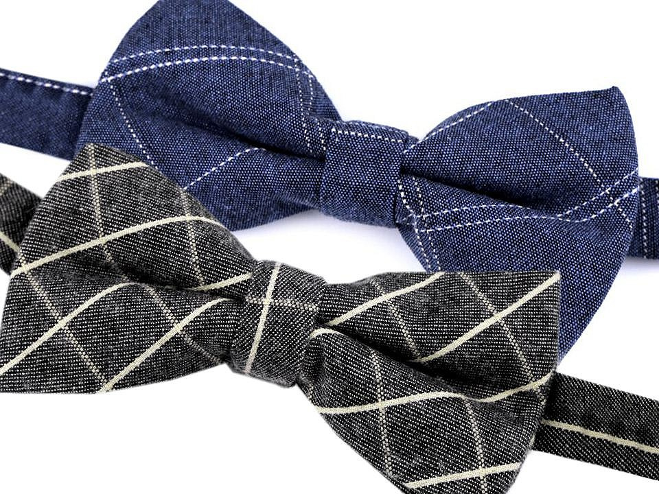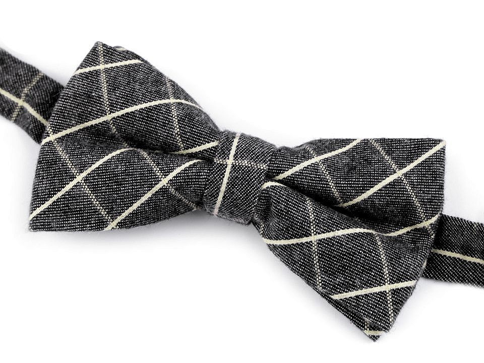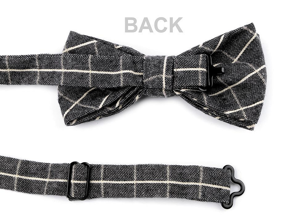 Motýlek je vázaný, padne všem, stačí jen utáhnout nastavitelný pásek kolem krku. Nejdelší délka pásku okolo krku je 49 cm. Zapínání je kovové, pásek je ze stejné bavlněné tkaniny jako motýlek.