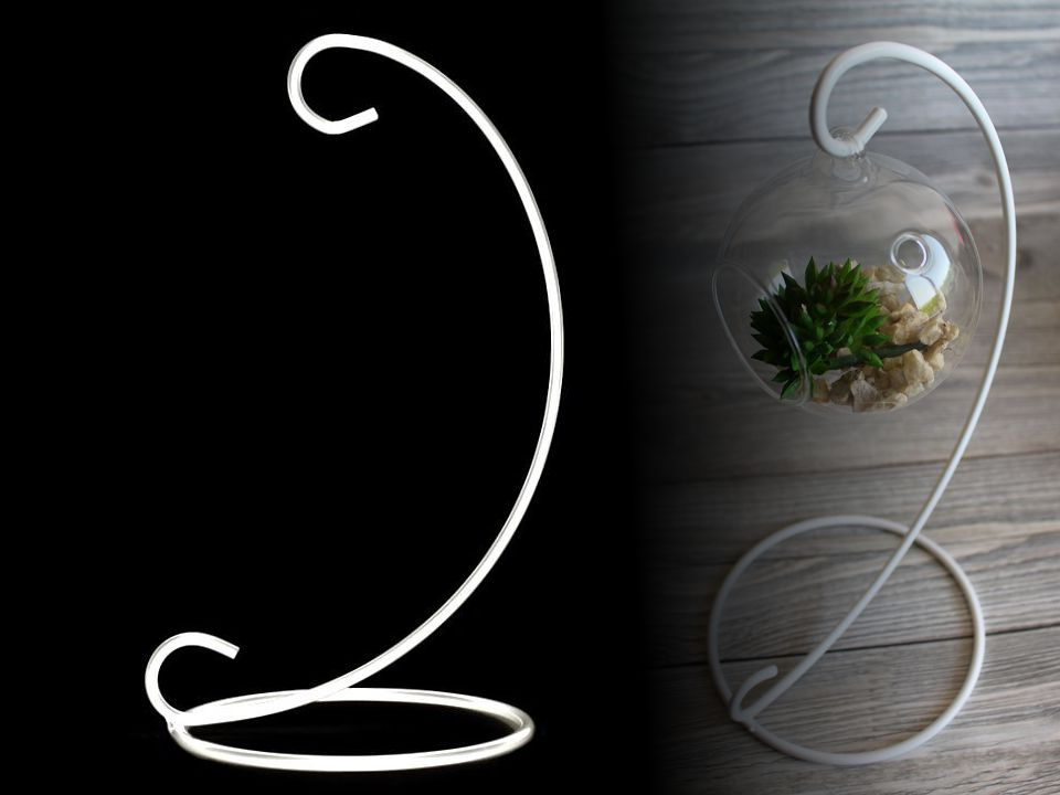 Kovový stojan má jednoduchý, ale efektní design. Využijete ho na zavěšení skleněných aerárií nebo baněk. Stojan má dobrou stabilitu a povrchový nástřik.