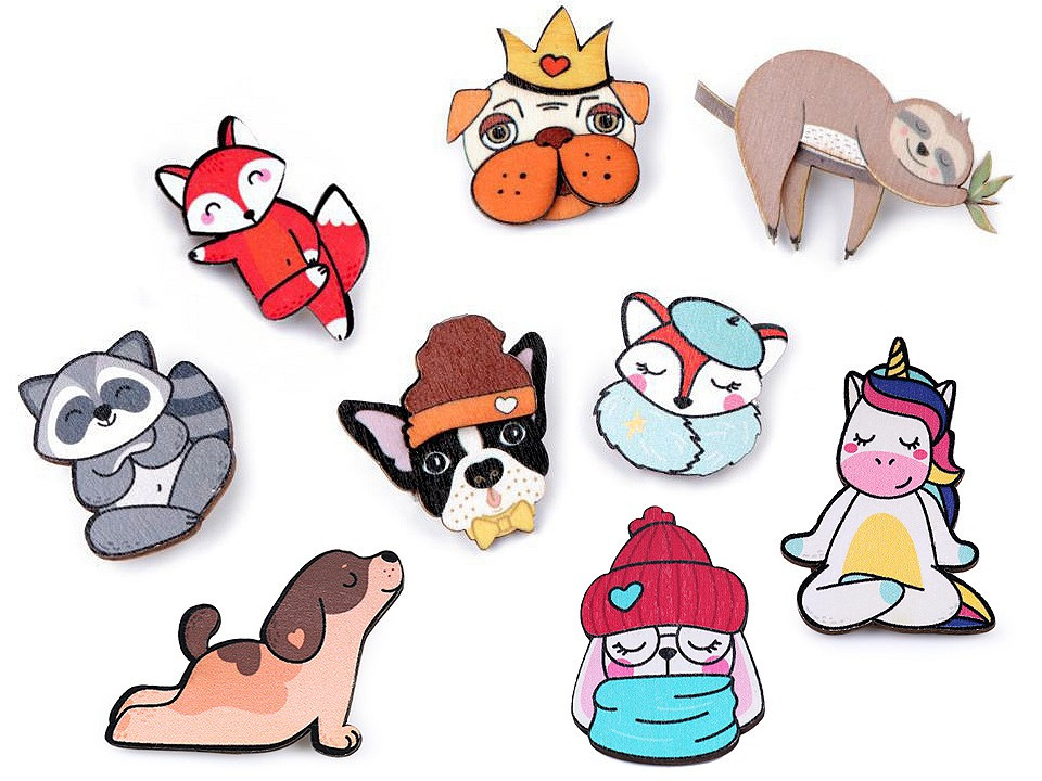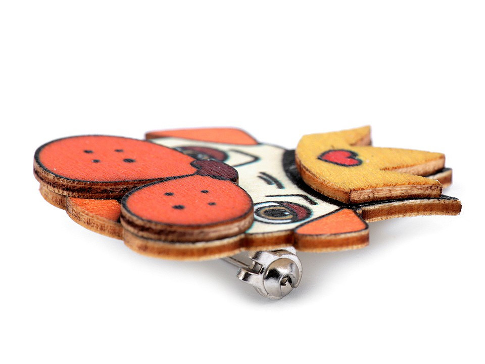 Dřevěná brož s motivy zvířátek osloví všechny příznivce drobných doplňků. Bude skvělou ozdobou halenek, košil, riflových bund, kabátů, čepic, tašek či batohů.