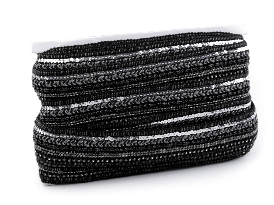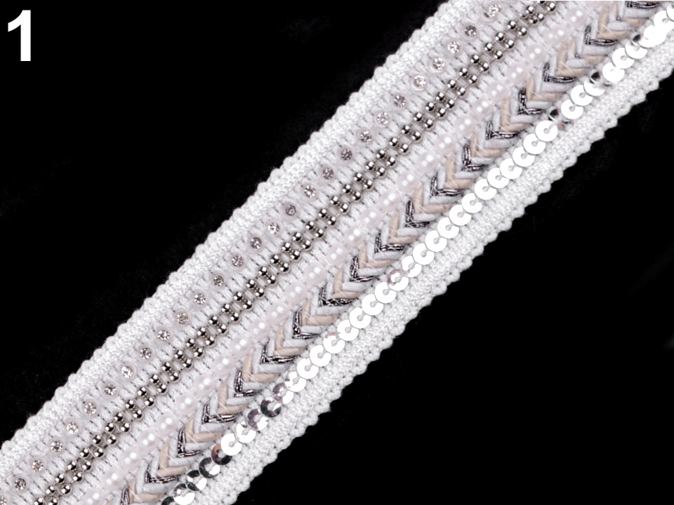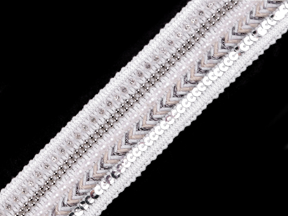 Prýmek dodá vašim oděvům a doplňkům styl. Díky flitrům, lurexovému vláknu a štrasovým kamínkům se lehce třpytí. Perly pak prýmku dodávají jemnost a eleganci. Prýmek je vhodný k našití na těžší materiály. Můžete ho našít na sukně, kostýmy, saka, kabáty, šaty nebo korzety. Skvěle ozdobí klobouky, tašky nebo bytový textil jako jsou polštáře, ubrusy apod.
