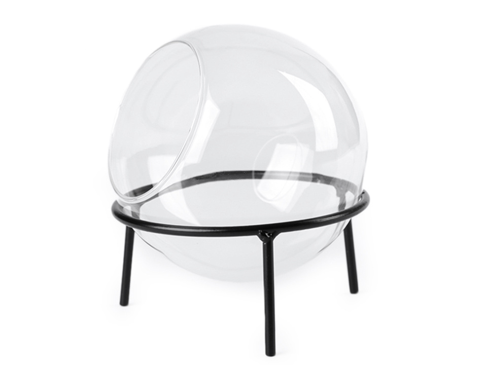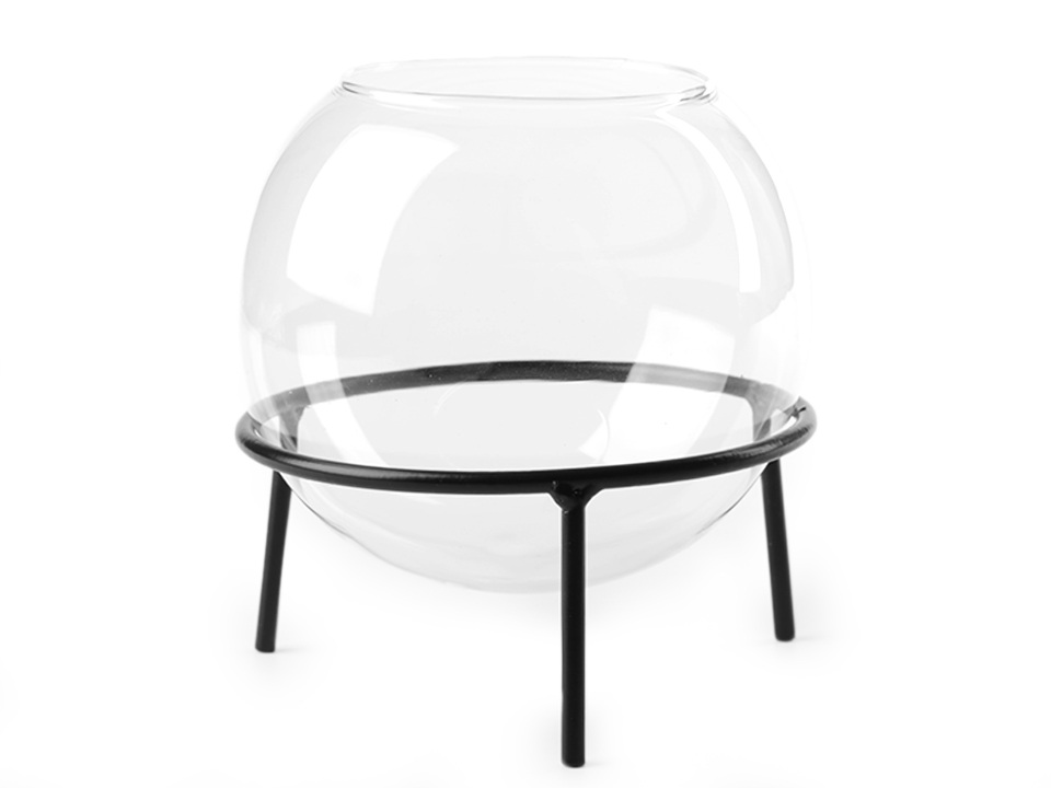 Skleněná koule vám poslouží jako originální doplněk. Je postavená na kovovém stojanu. Uvnitř vyniknou sukulenty, květy nebo masožravky, které můžete doplnit pískem či kamínky.