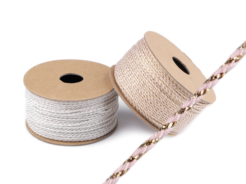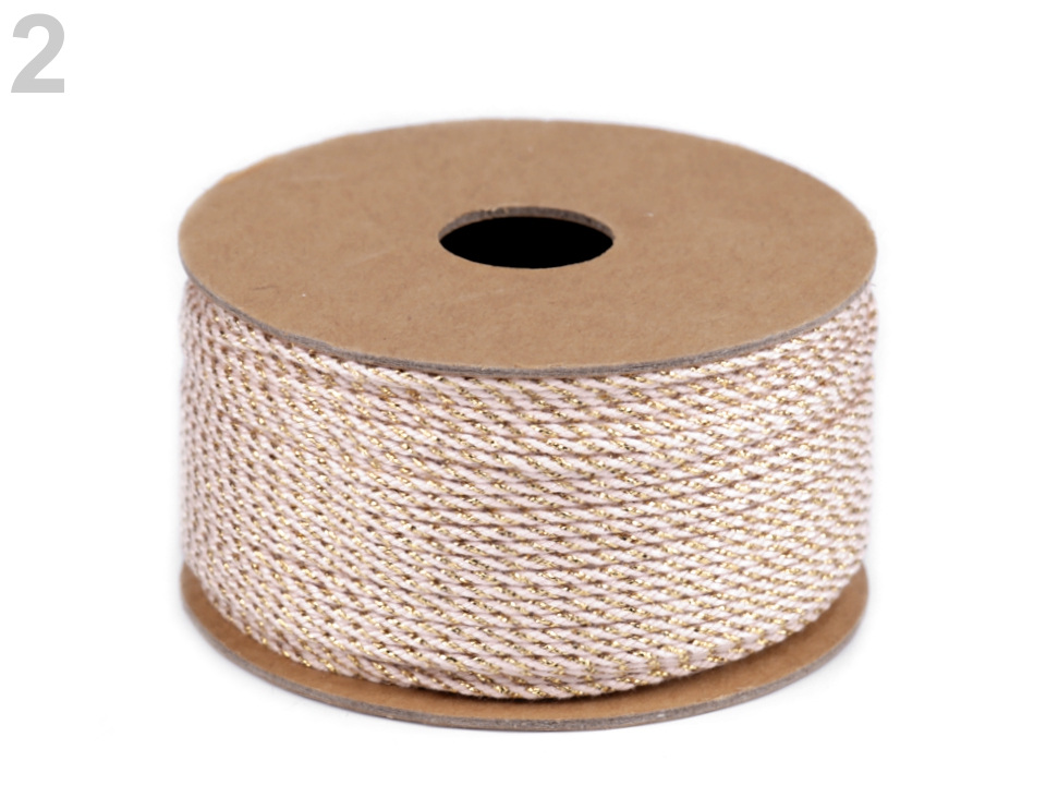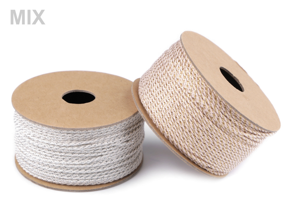 Splétaná bavlněná šňůrka se nevšedně třpytí díky vpletenému lurexovému vláknu. Využijete ji k dekoračním účelům, k efektnímu balení a zdobení dárků, nebo jako navlékací materiál při výrobě náhrdelníků, náramků, apod.