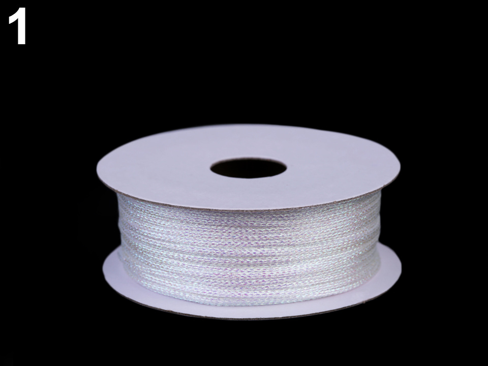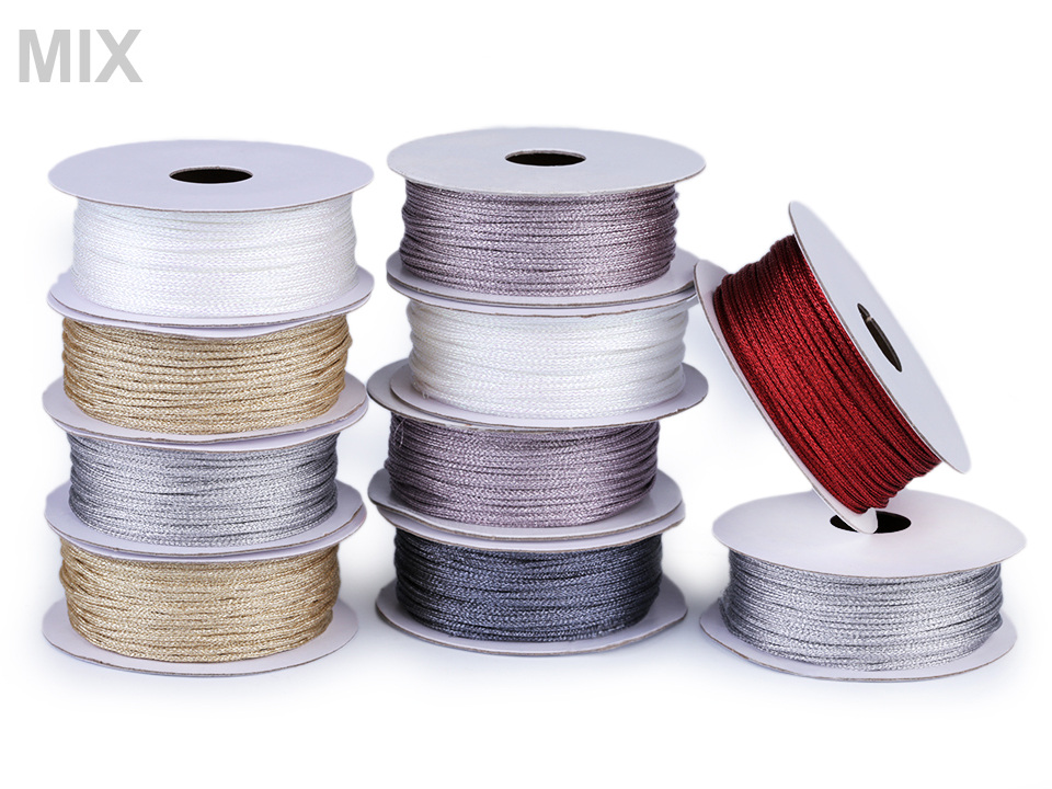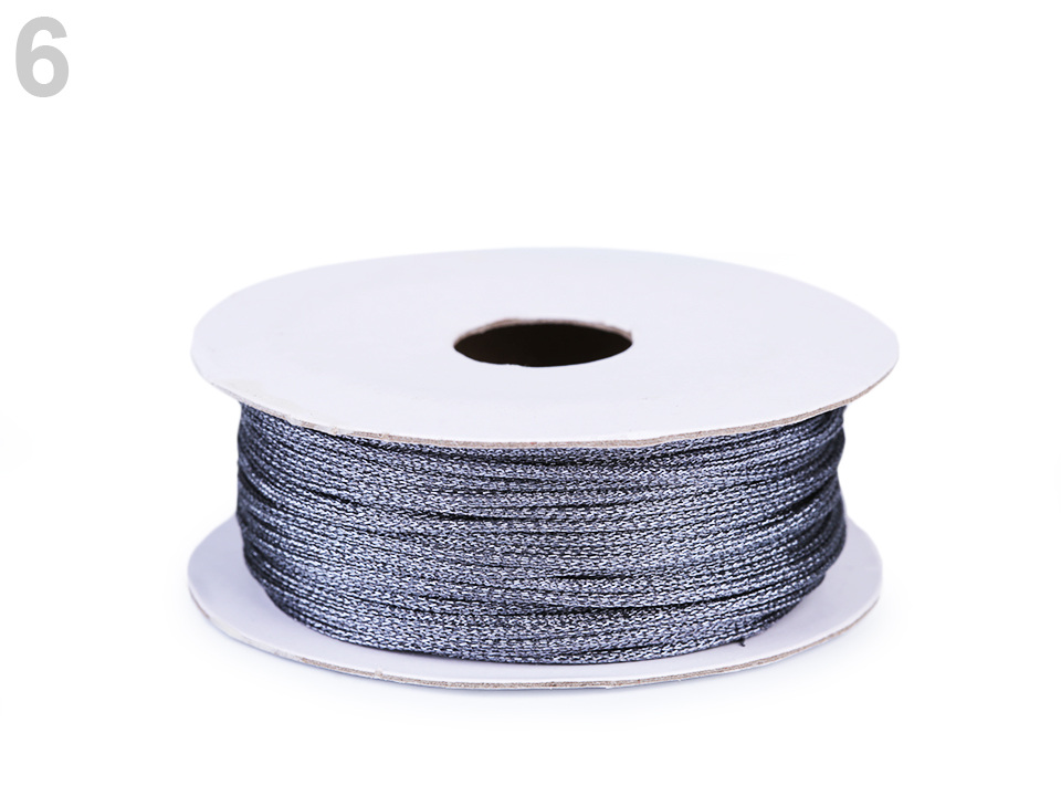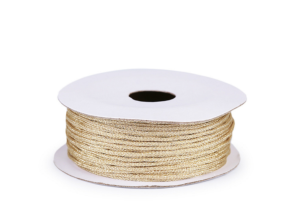 Tenká splétaná šňůrka se díky lurexovému vláknu elegantně třpytí. Skvěle s ní zabalíte a ozdobíte dárky, využijete ji k různým dekoračním účelům, nebo ji můžete použít jako navlékací materiál při výrobě náhrdelníků, náramků, apod.