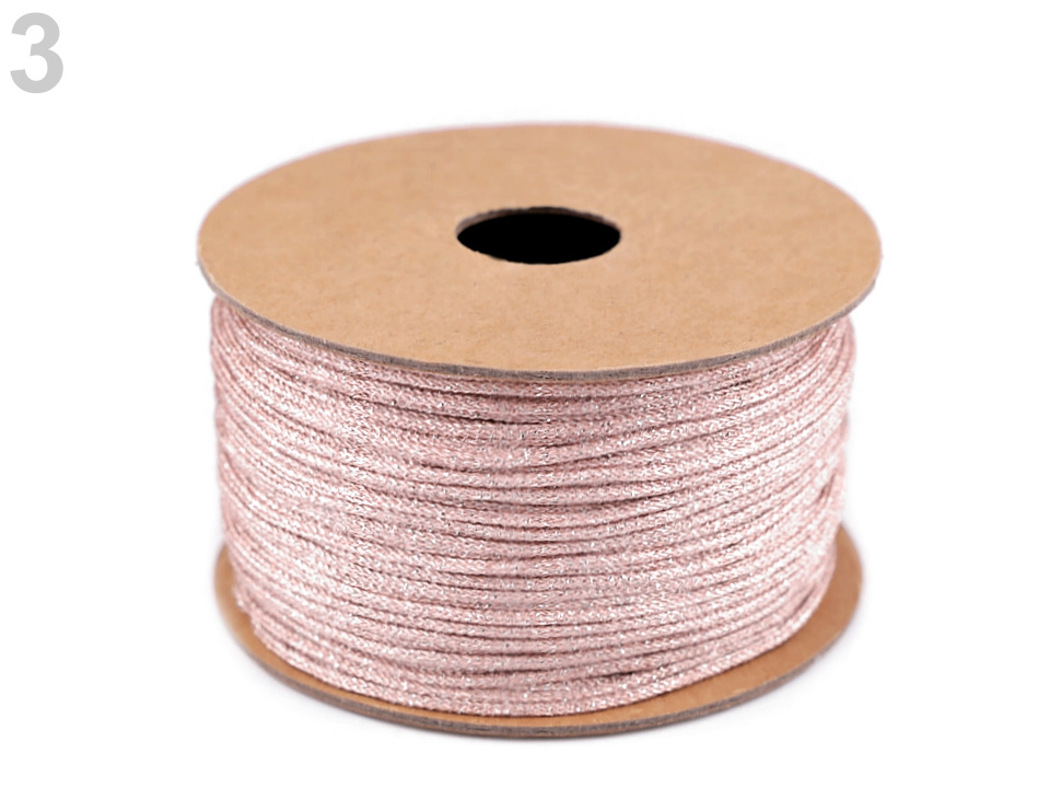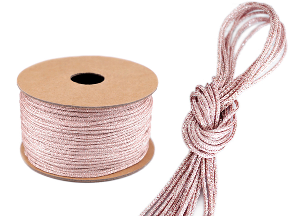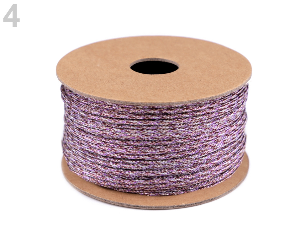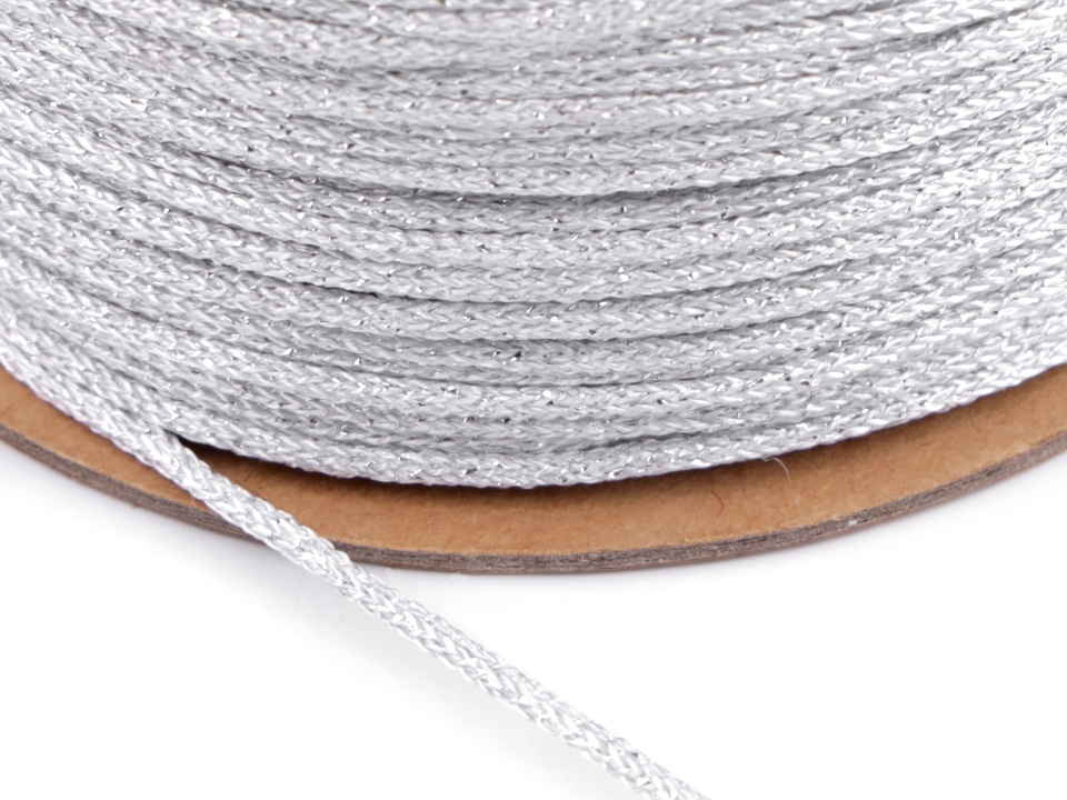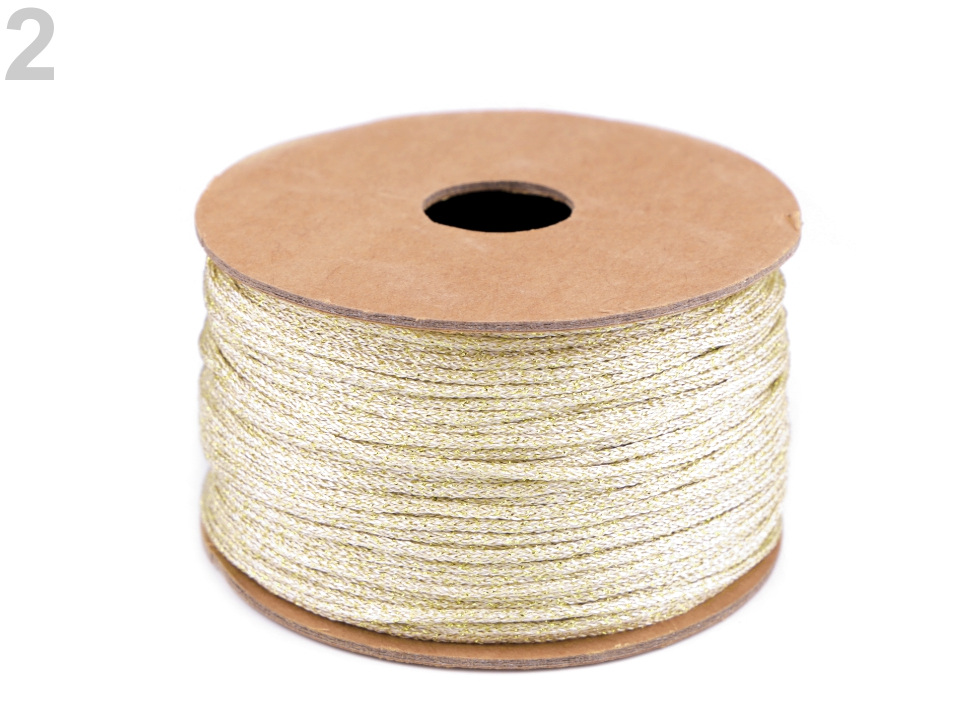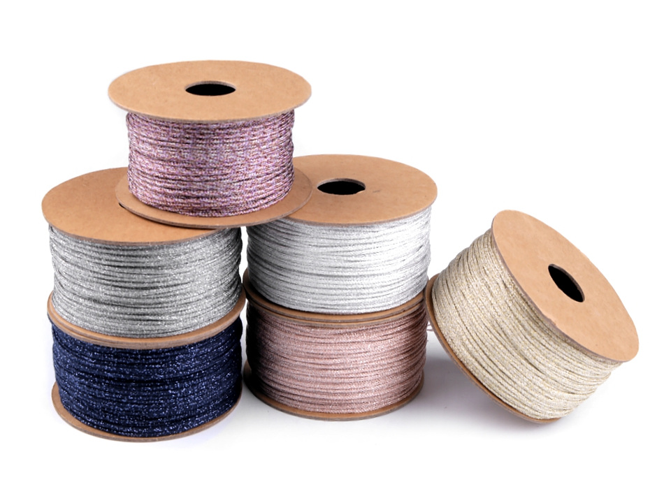 Splétaná šňůrka s lurexovým vláknem se elegantně třpytí. Využijete ji především k dekoračním účelům, nevšedně s ní zabalíte a ozdobíte dárky, ale skvěle poslouží také jako navlékací materiál při výrobě náhrdelníků, náramků, apod.