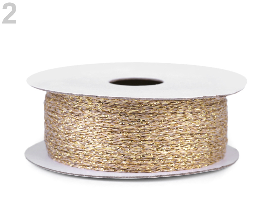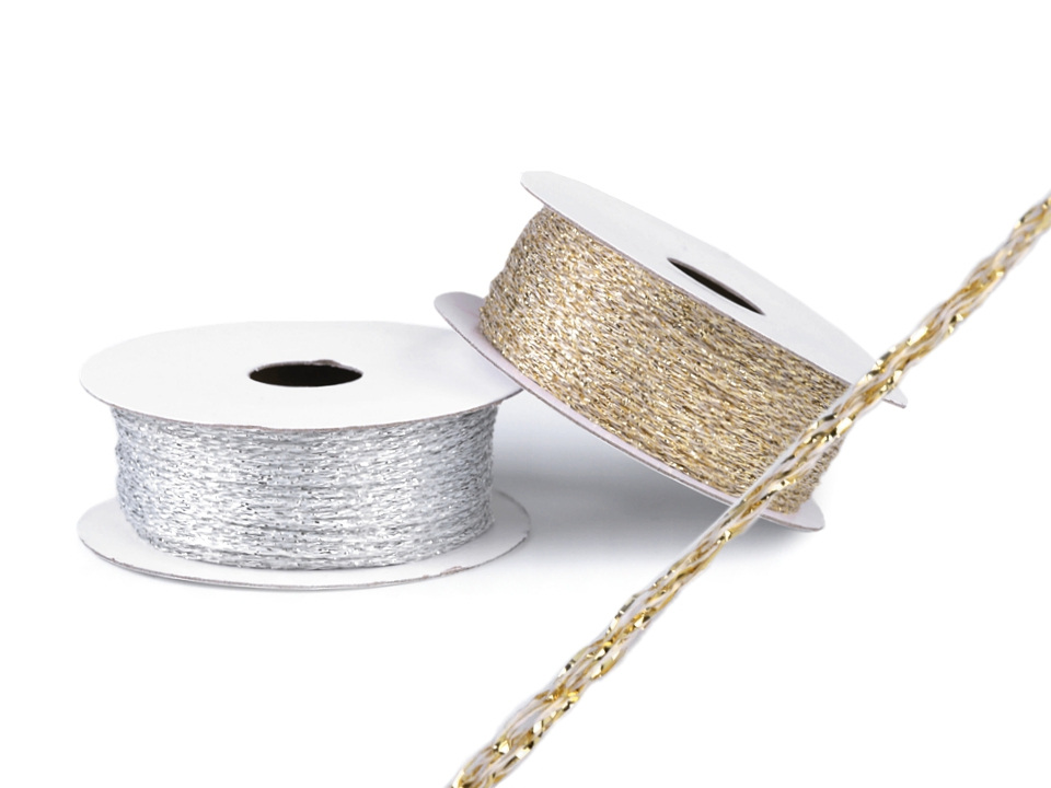 Splétaná šňůrka se elegantně třpytí díky lurexovému vláknu. Nevšedně s ní zabalíte a ozdobíte dárky, využijete k různým dekoračním účelům, nebo ji můžete použít jako navlékací materiál
