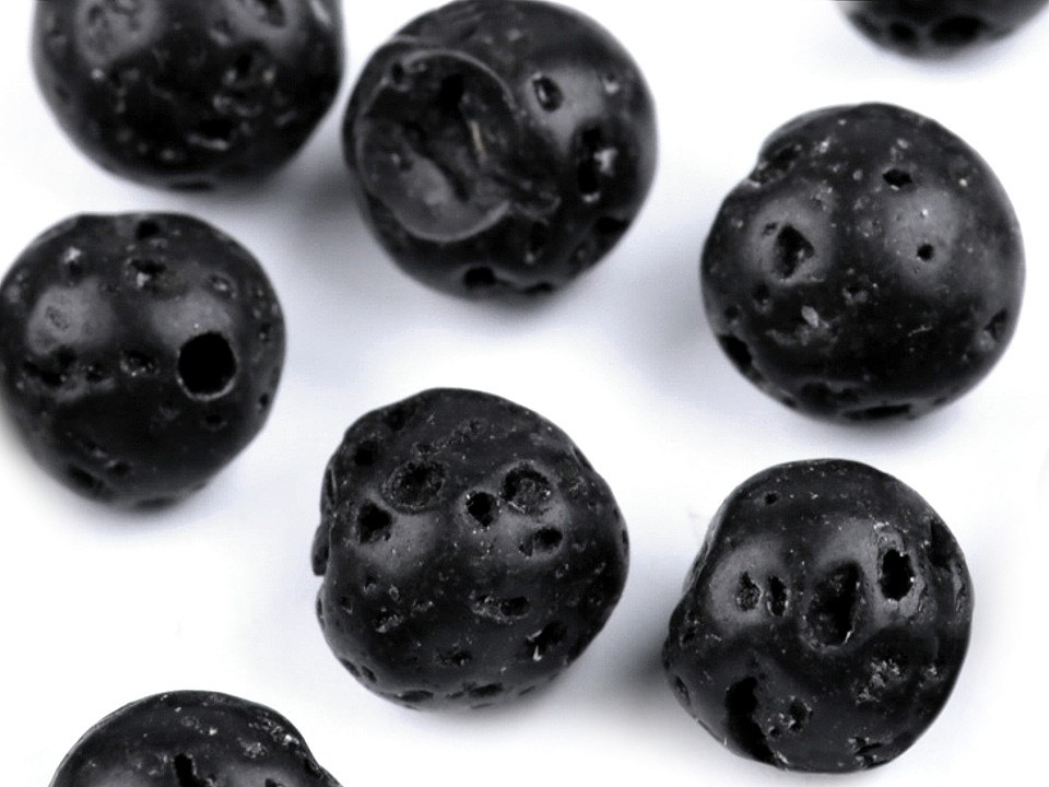 Korálky z černé přírodní lávy jsou zajímavé svou pórovitou, ale přitom velice pevnou strukturou. Najdou široké uplatnění při výrobě šperků. Svou velikostí jsou ideální na výrobu jemnějších Buddhových náramků. Jsou oblíbené na techniku drátování, v kombinaci s drahými kovy, ale i s obyčejnými drátky. Skvěle vypadají i na jednoduchých návlekových šňůrách , které svým přírodním složením ozvláštní. Černá láva je mezi šperkaři velice oblíbená pro svou neopakovatelnou přírodní strukturu.