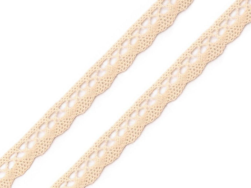 Paličkovaná krajka je vyrobena z bavlny. Jemný vzor dodává krajce romantický nádech.Můžete ji použít jako lem ubrusů a deček nebo vyzdobit blahopřání.