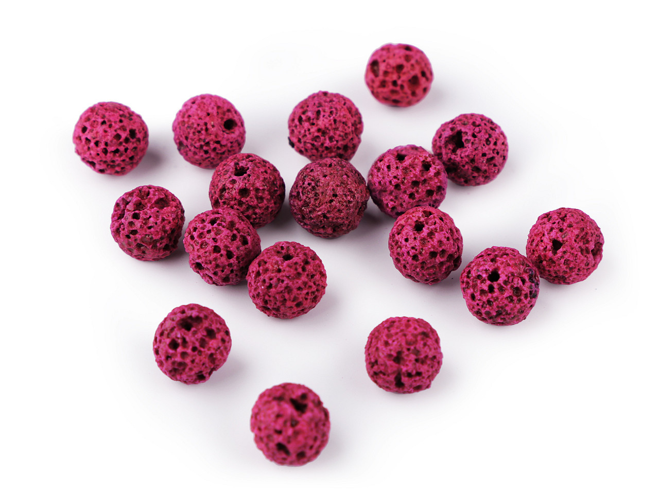 Přírodní korálky z dobarvené lávy jsou zajímavé svou hrubě pórovitou, ale přitom velice pevnou strukturou. Najdou široké uplatnění při výrobě šperků. Svou velikostí jsou ideální na výrobu Buddhových náramků. Jsou oblíbené na techniku drátování, v kombinaci s drahými kovy, ale i s obyčejnými drátky. Skvěle vypadají i na jednoduchých návlekových šňůrách , které svým přírodním složením ozvláštní. Barevná láva je mezi šperkaři velice oblíbená pro svou neopakovatelnou přírodní strukturu.