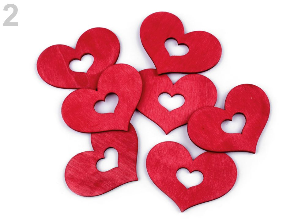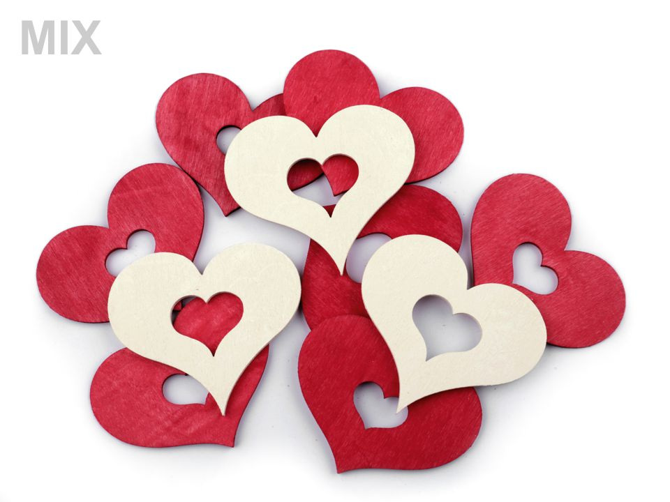 Dřevěná dekorační srdce mají uprostřed výsek menšího srdíčka, který umožňuje navázání na provázek. Srdíčka využijete jako ozdobu květinových vazeb, dárků i slavnostní tabule.
