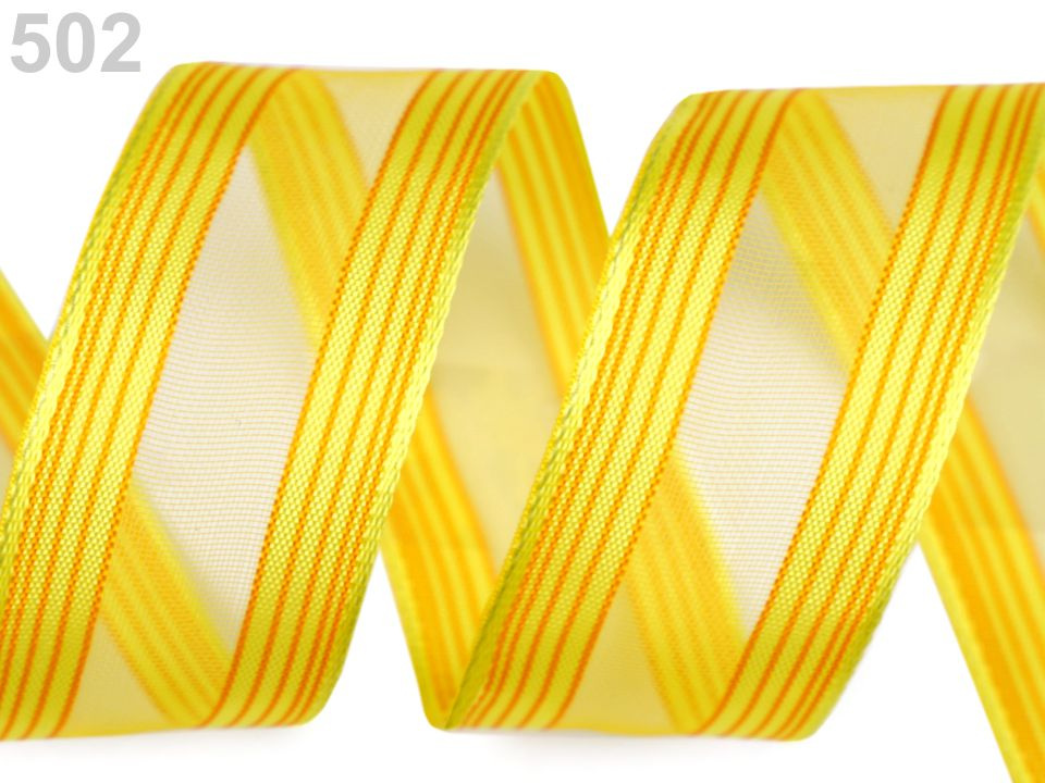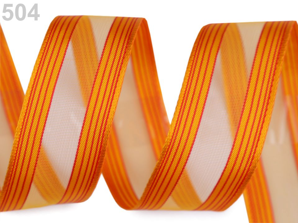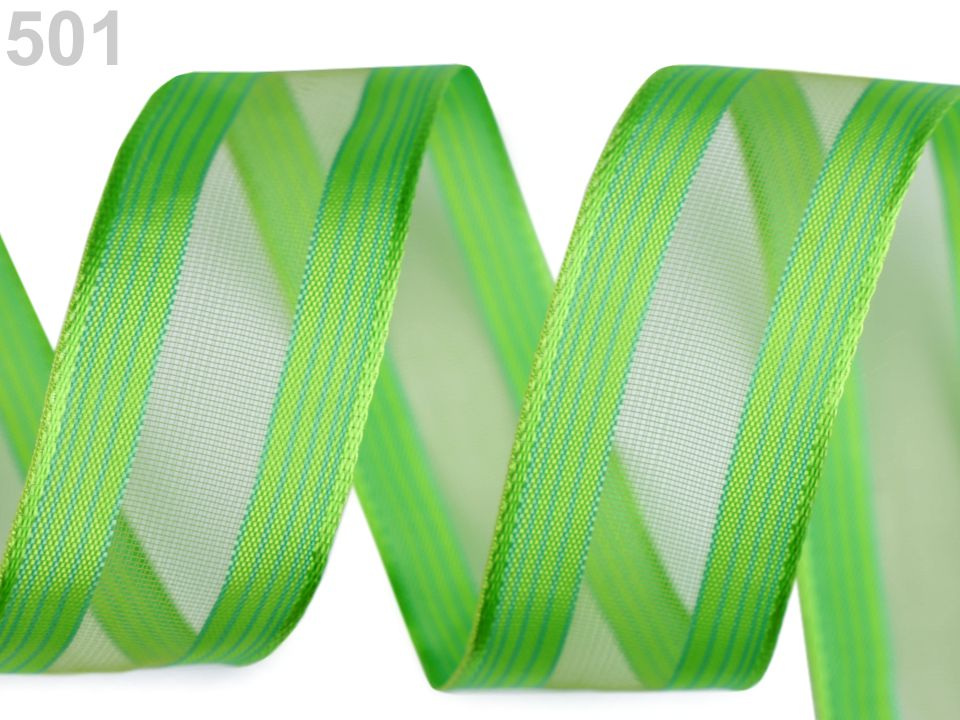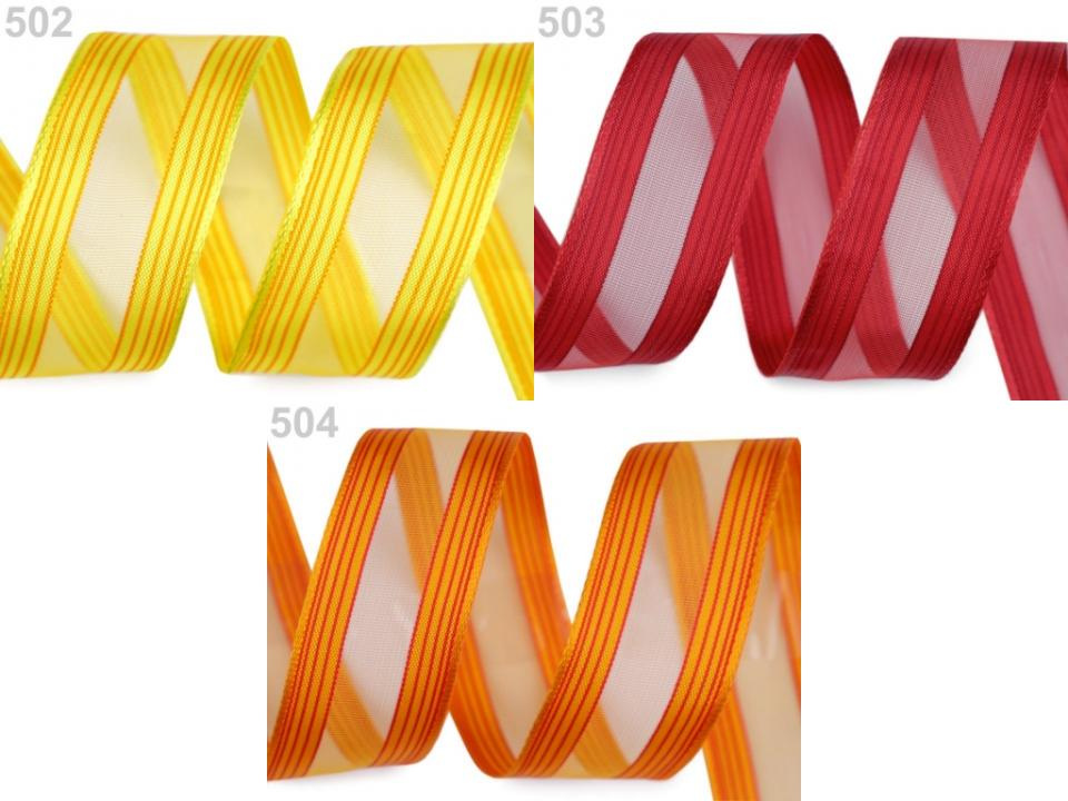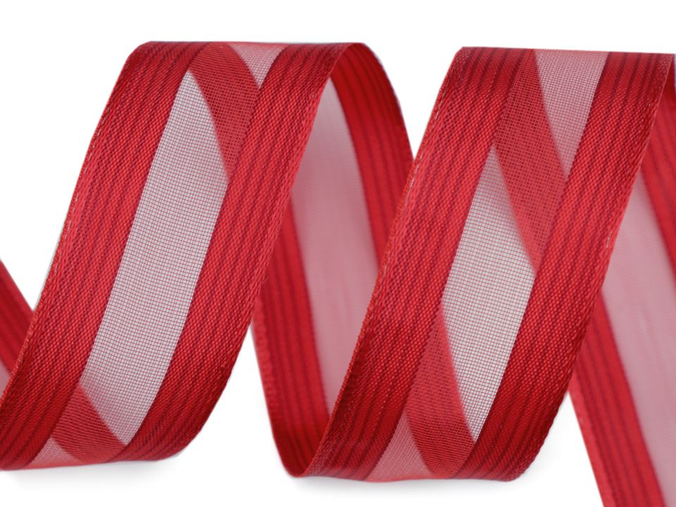 Dekorační stuhu zdobí průsvitný monofilový střed a jemné proužky, které jsou z obou stran stuhy. Díky drátům po stranách perfektně drží tvar.