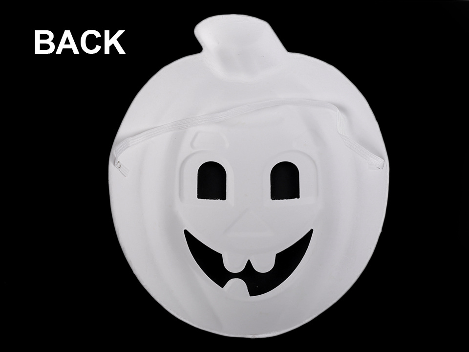 Rozměry u masky č. 1 - Dýně jsou 17 x 22 cm, délka pruženky je 24 cm.