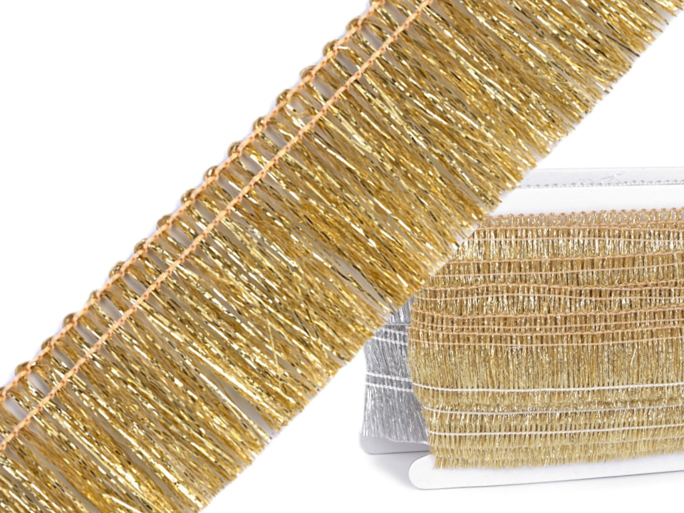 Leonské třásně dodají vašemu textilu nádech luxusu díky lesklým kovovým vláknům. Jsou vhodné k ozdobení oděvů, divadelních, karnevalových nebo tanečních kostýmů, či bytového textilu jako jsou polštáře, ubrusy, apod.