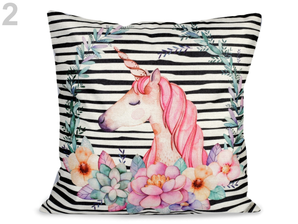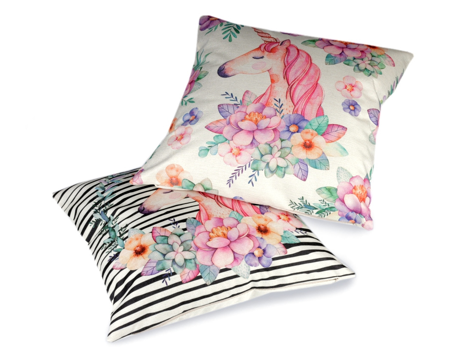 Povlak na polštář si kvůli potisku s jednorožcem zamilují hlavně malé slečny. Materiál připomíná jutu. Povlaky spolu designově ladí, můžete je mezi sebou kombinovat. Zapínají se na zip.
