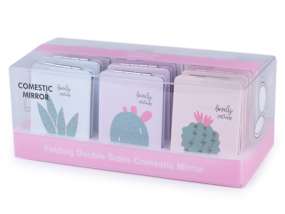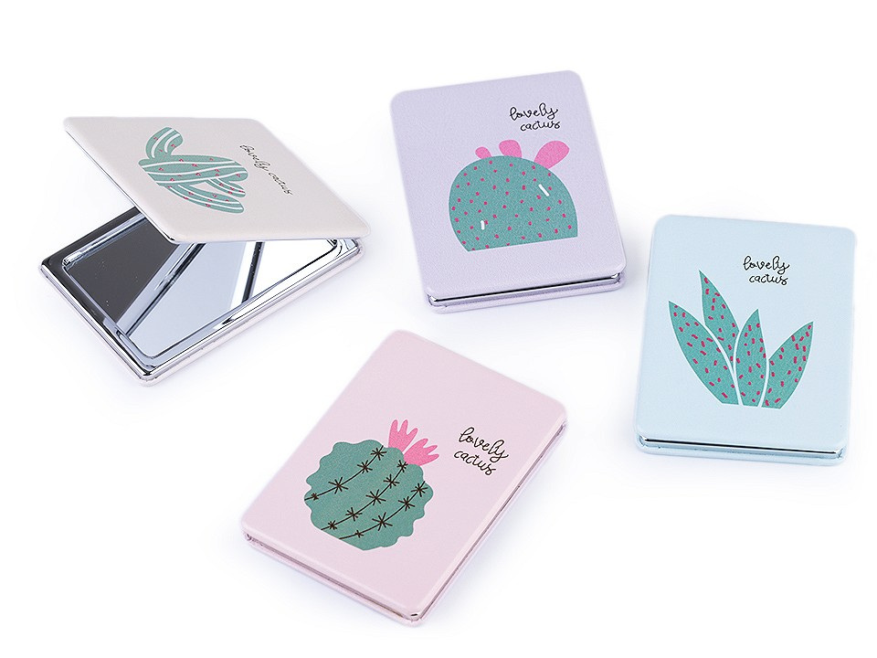 Otevírací zrcátko se stylovým potiskem kaktusu je výborný pomocník pro opravu make-upu během dne.