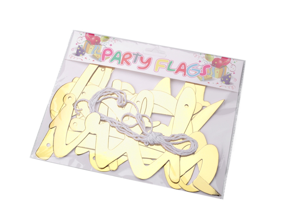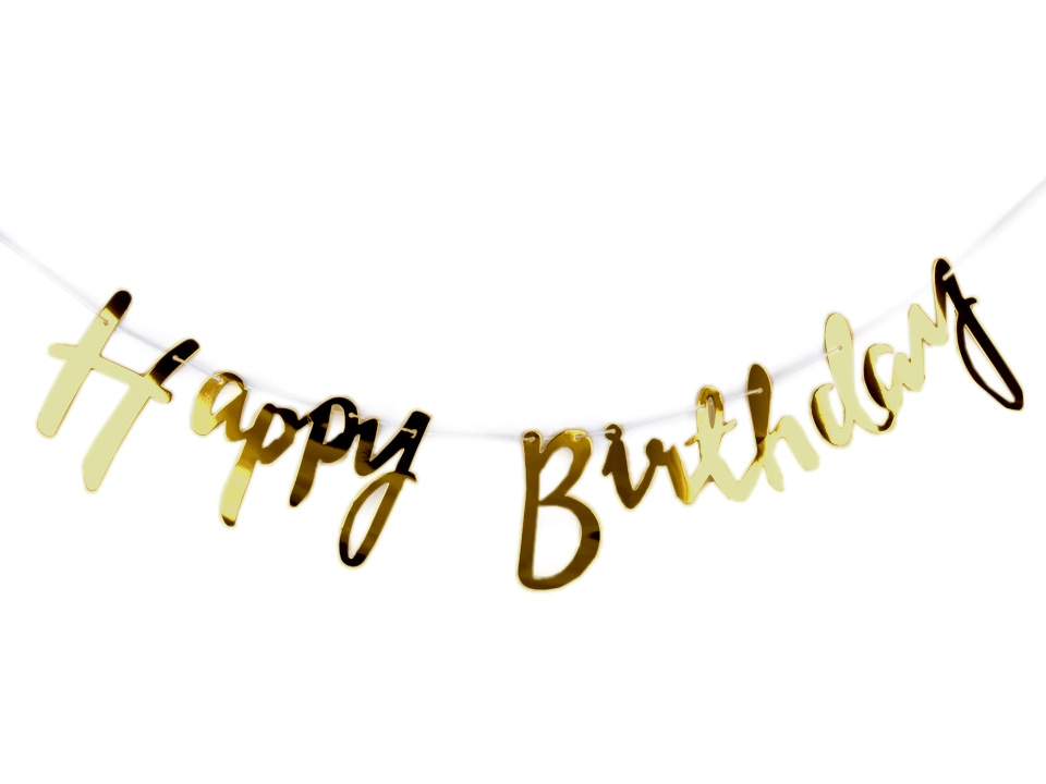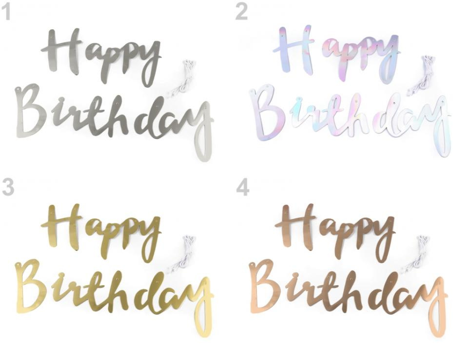 Nápis "Happy Birthday" nesmí chybět na žádné narozeninové párty. V balení najdete provázek, který provlečete nápisem. Pak ho stačí už jen pověsit na stěnu. Nápis je lesklý, jednostranný, z pevného papíru.