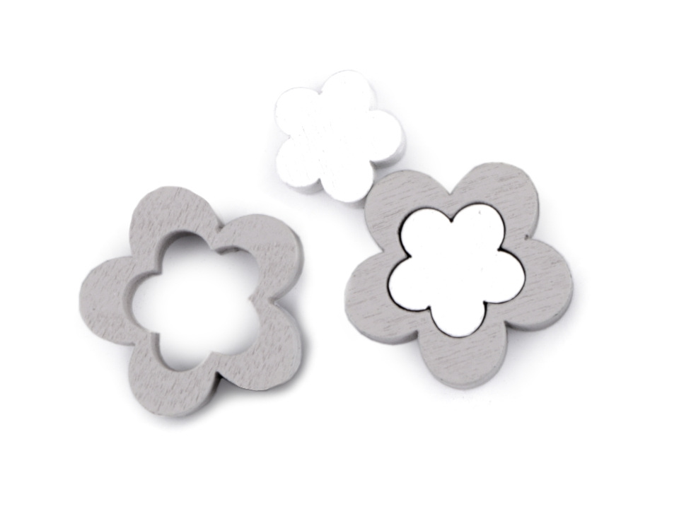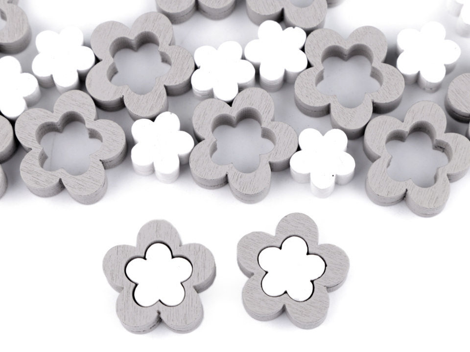 Dřevěné květinky doplní vaše velikonoční a jarní aranžmá, věnce, vazby, slavnostní tabule, apod. Skládají se ze dvou kusů, které mohou být využity samostatně. Po vyjmutí menší květinky vznikne výsek, do kterého můžete provléct provázek a větší kytku zavěsit do prostoru nebo na větvičky. Kytičky můžete přilepit lepidlem, tavnou pistolí nebo oboustrannou lepicí páskou.