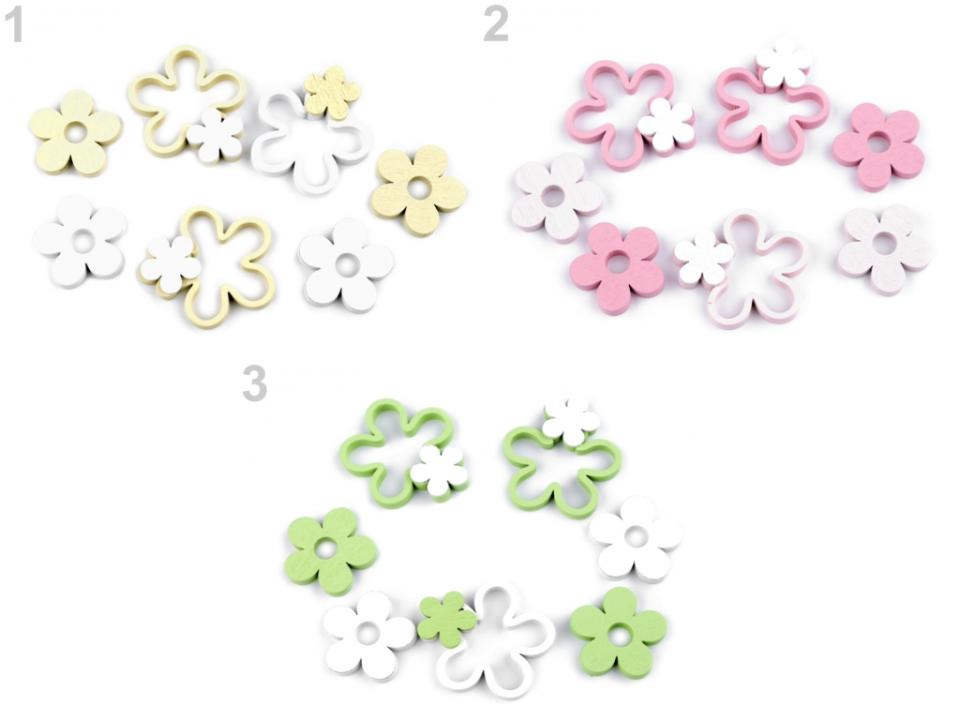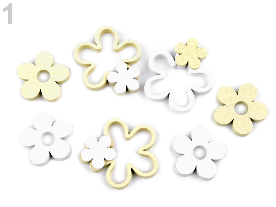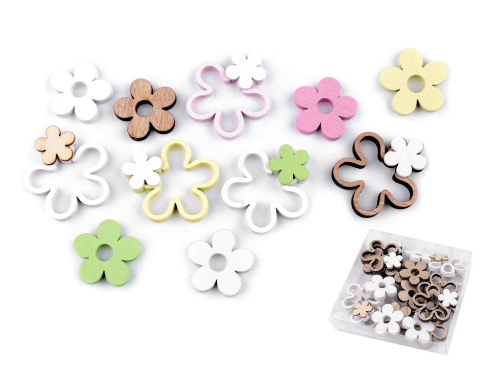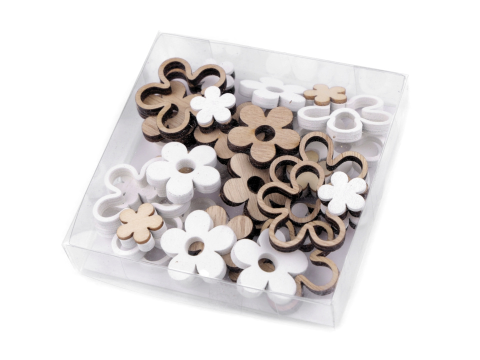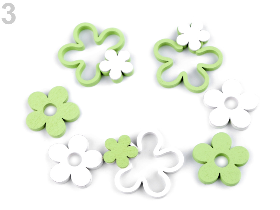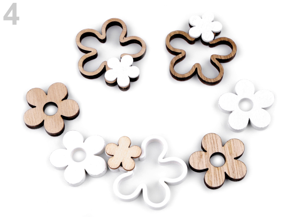 Dřevěné květinky můžete zakomponovat do květinových vazeb, pověsit na větvičky ve váze nebo je nalepit na věnce či krabičky. Zajímavě vyniknou také jako ozdoba stolu.