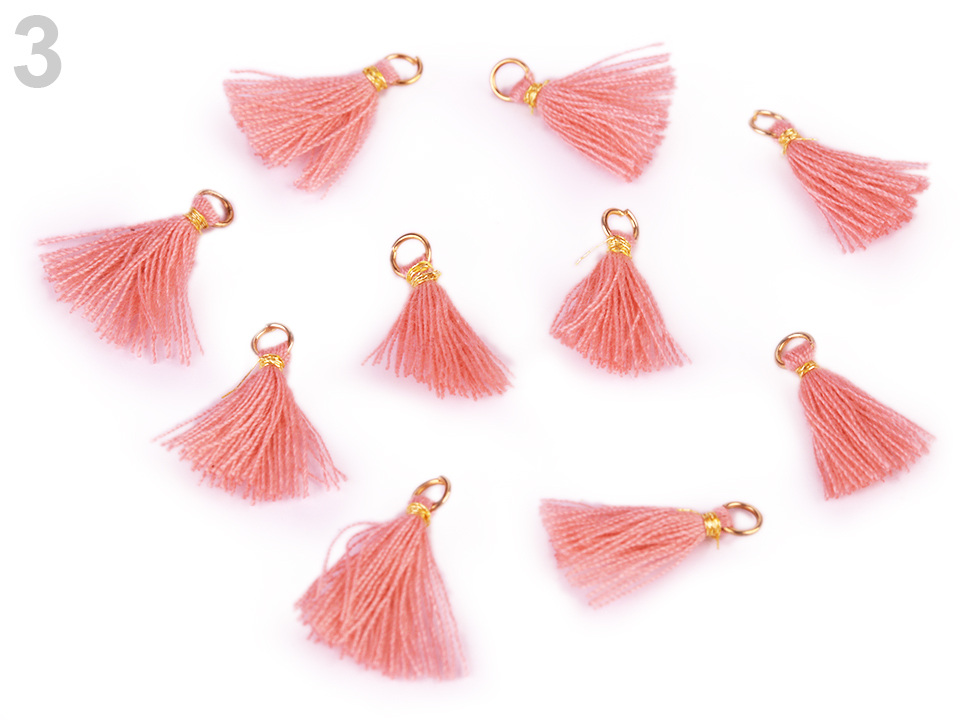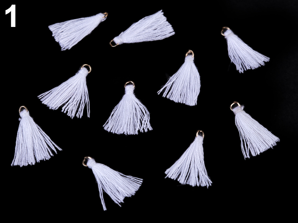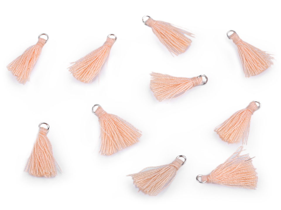 Drobné textilní střapce s očkem se uplatní jak v oděvním průmyslu, tak ve výrobě bižuterie. Ozdobíte s nimi svetříky, halenky, šaty apod. Díky jejich malé velikosti s nimi vytvoříte i nevšední náramky, náušnice nebo náhrdelníky, klíčenky, jedinečné ozdoby na tašky, kabelky či boty.