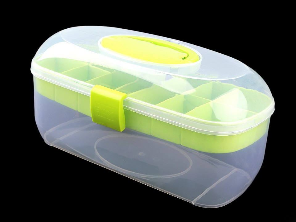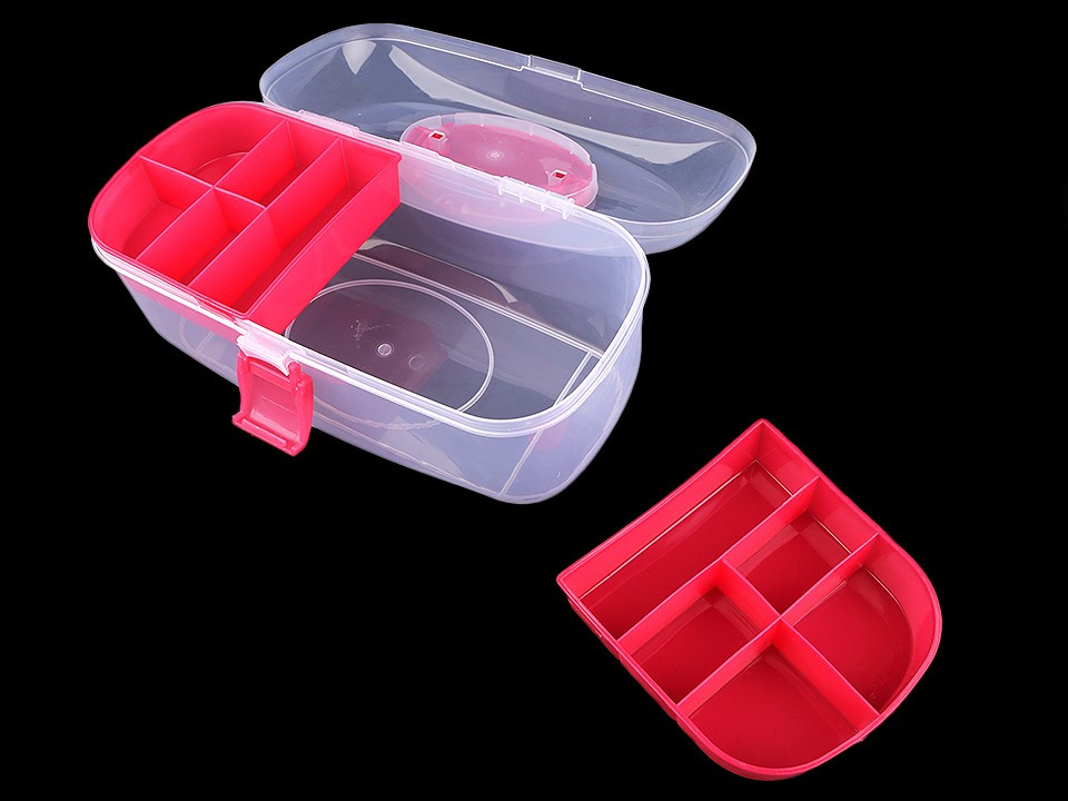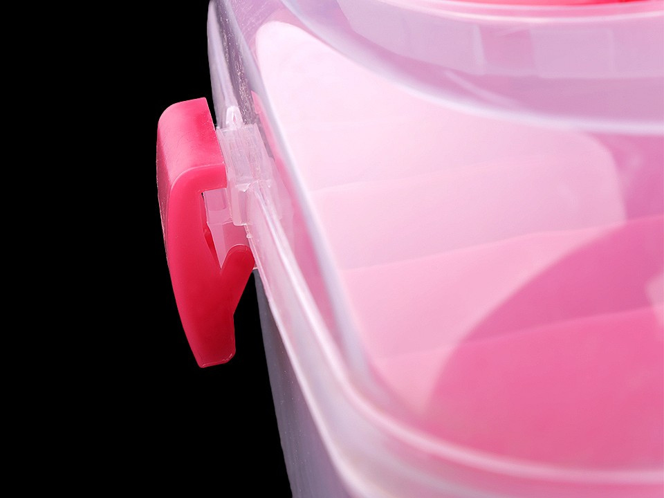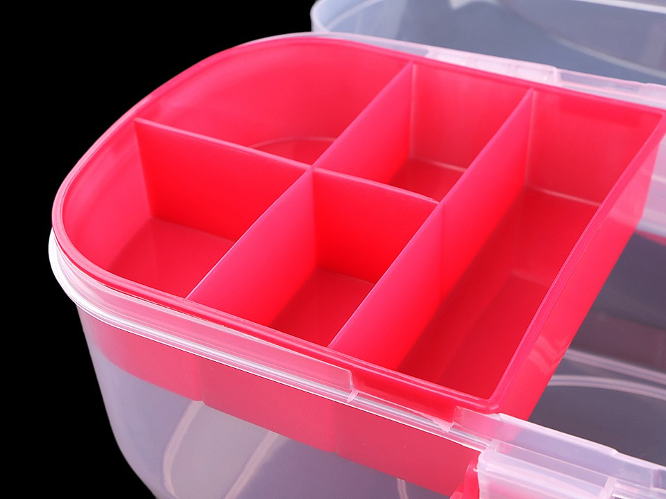 Průhledný zásobník s odnímatelným patrem je velice praktický pomocník při skladování komponentů a nářadí pro kreativní tvorbu. Má jednoduché pákové uzavírání a rukojeť na pohodlné přenášení. Je vhodný i pro švadleny, které ocení, že je dovnitř vidět.