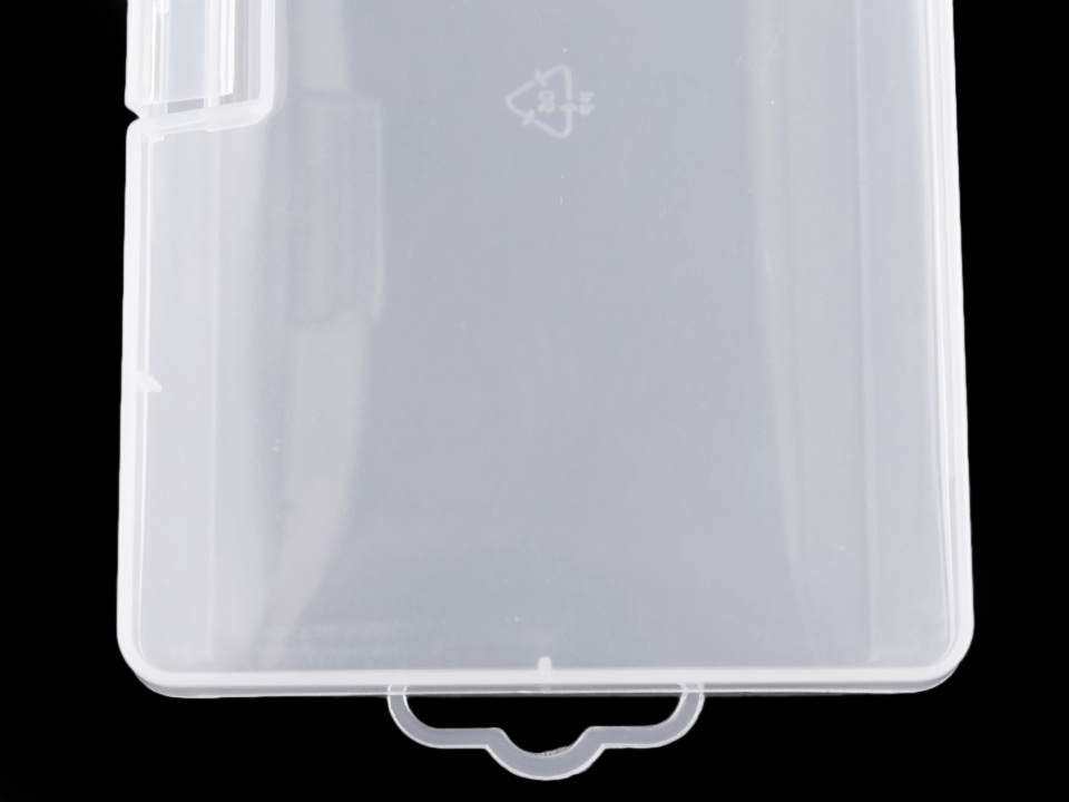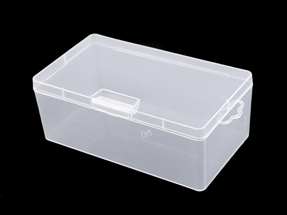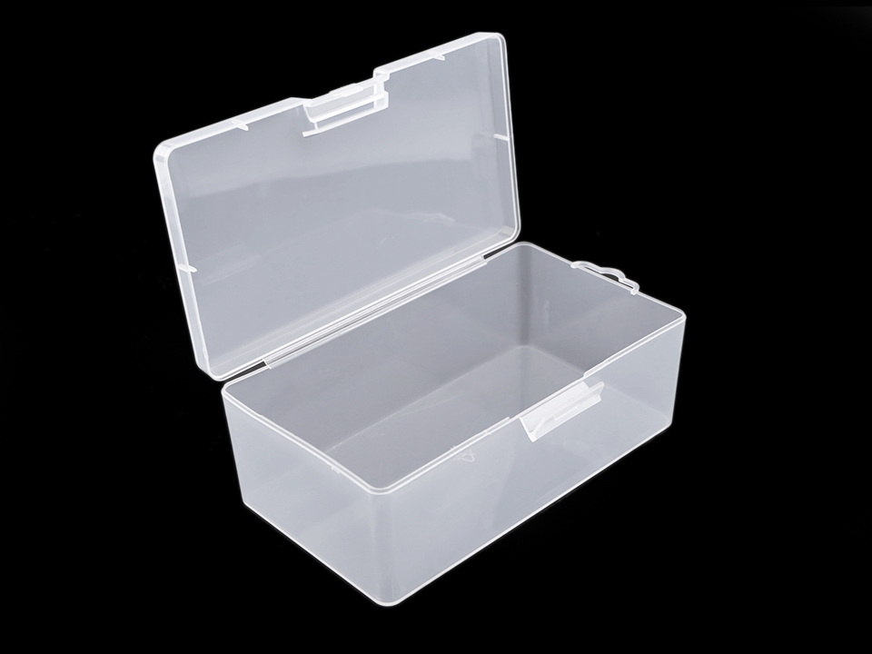 Transparentní krabičky na uložení materiálu a nářadí na tvoření. Mají obdélníkový tvar a očko na zavěšení. Můžete je zavěšovat nebo skládat na sebe. Krabičky se jednoduše zavírají na pákový uzávěr, díky průhledného plastu vždy perfektně víte, co je uvnitř.