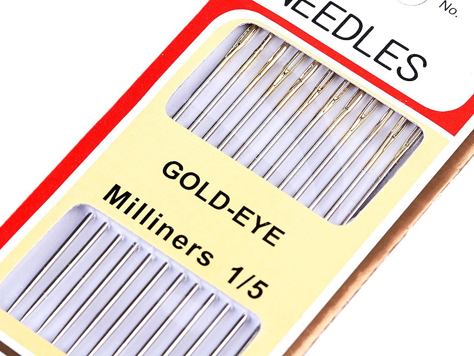 Kloboučnické jehly se zlatým ouškem jsou dlouhé a ostré. Využijete je pro ruční šití a stehování. Jsou kalené, tudíž jsou pevné a neohýbají se.