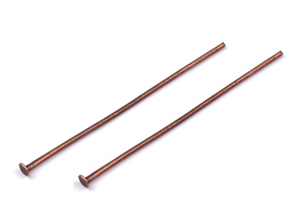 Ketlovací nýty ve velikosti 40 mm pro navlékání korálků. Na druhém konci ketlovacími kleštěmi vytvoříte očko a to zavěsíte na řetízek nebo náušnicový háček. Ketlovací nýty jsou pevné, nemusíte se bát, že se očka otevřou. K dostání jsou v černé, platinové, stříbrné a měděné barvě. Galvanovány jsou v ČR a průměr zakončení je přibližně 1,5 – 2 mm. Na nýt lze navléct i rokajl s průvlekem 2mm. Nýty mohou mít místy zoxidované plošky.
