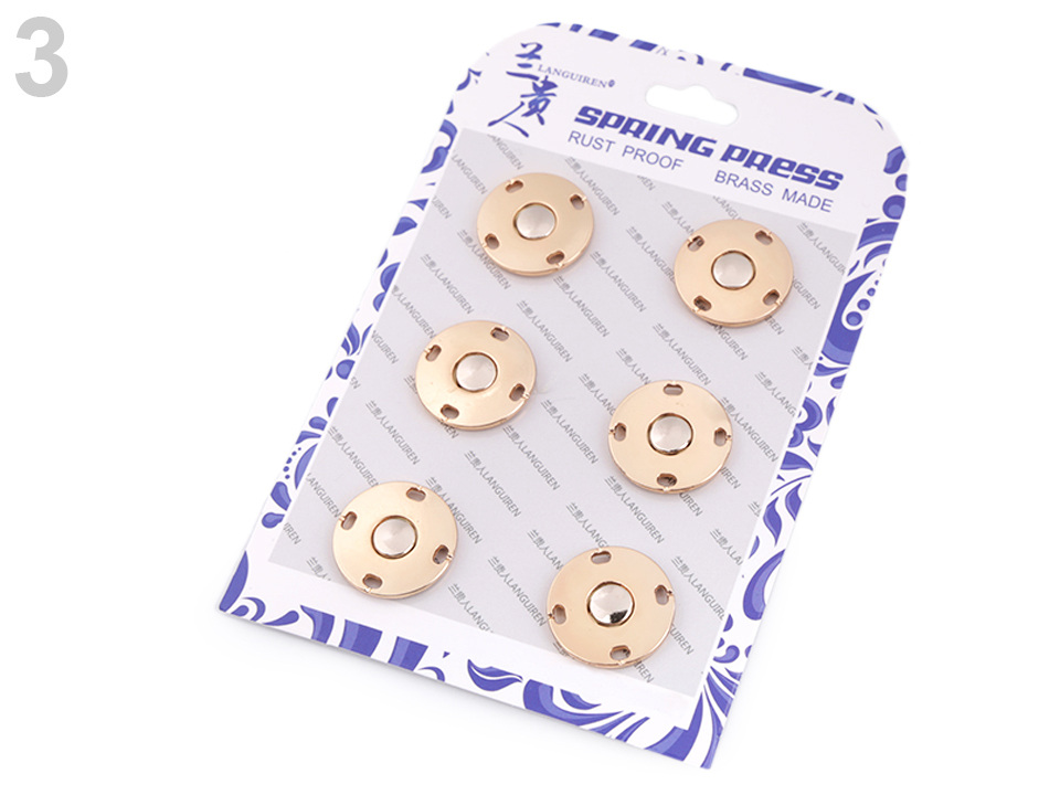 Velké patentky snadno našijete díky dírkám na jejich okraji. Skládají se ze dvou částí, které se protilehle přišívají na oděv. Zapnou se stisknutím k sobě. Jsou vhodné k našití na kabáty, bundy, vesty, mikiny apod. Využijete je i jako zapínání na tašky a batohy.