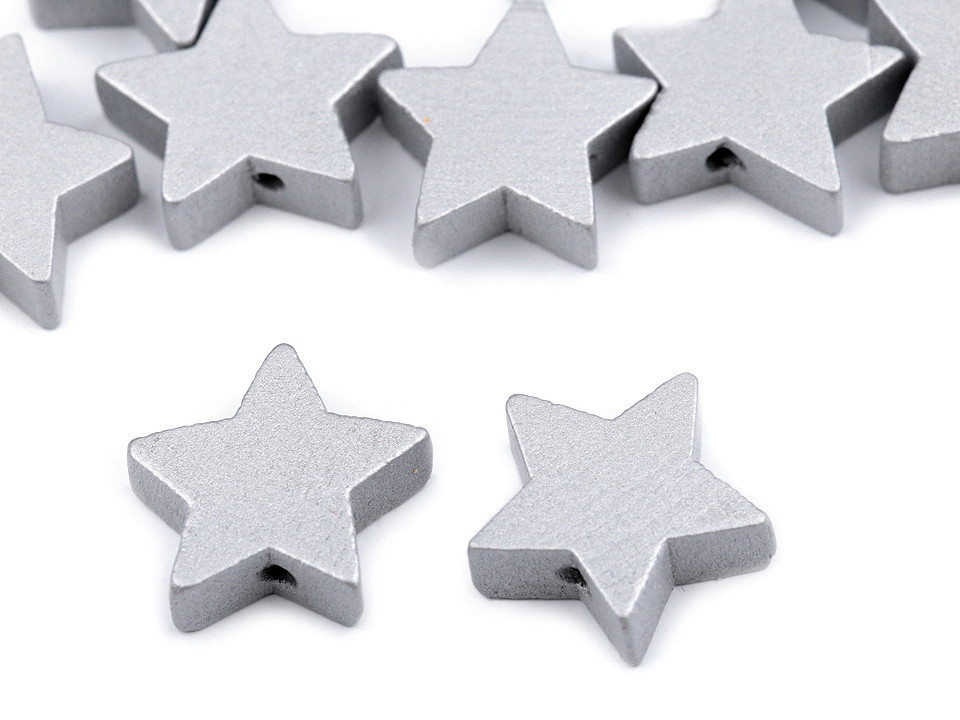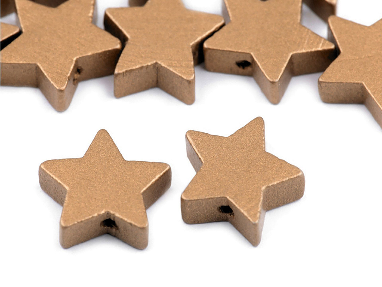 Metalické dřevěné korálky ve tvaru hvězdy vnesou do vašich výtvorů moderní design.