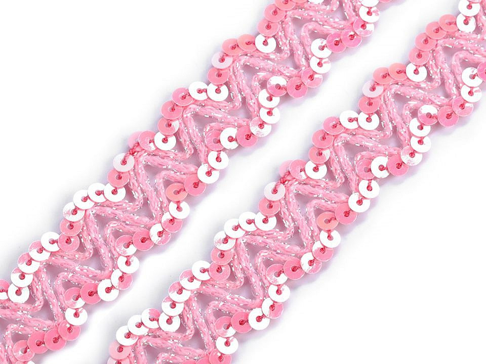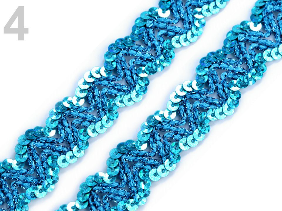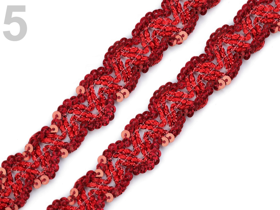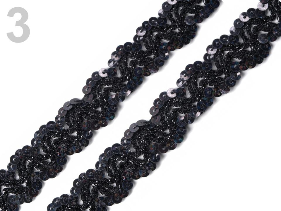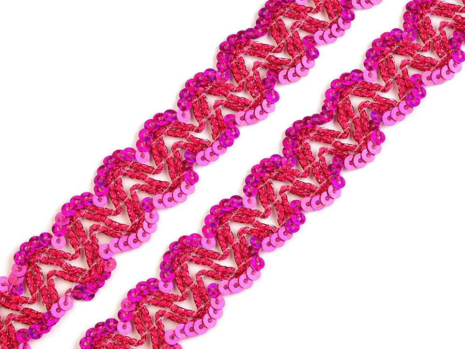 Noblesně působící prýmek s propracovanými detaily. Struktura vlnek je podpořena obloučky z flitrů po okrajích. Efektní třpyt vytváří nejen bohatě vetkaný lurex, ale také hologramová úprava flitrů.