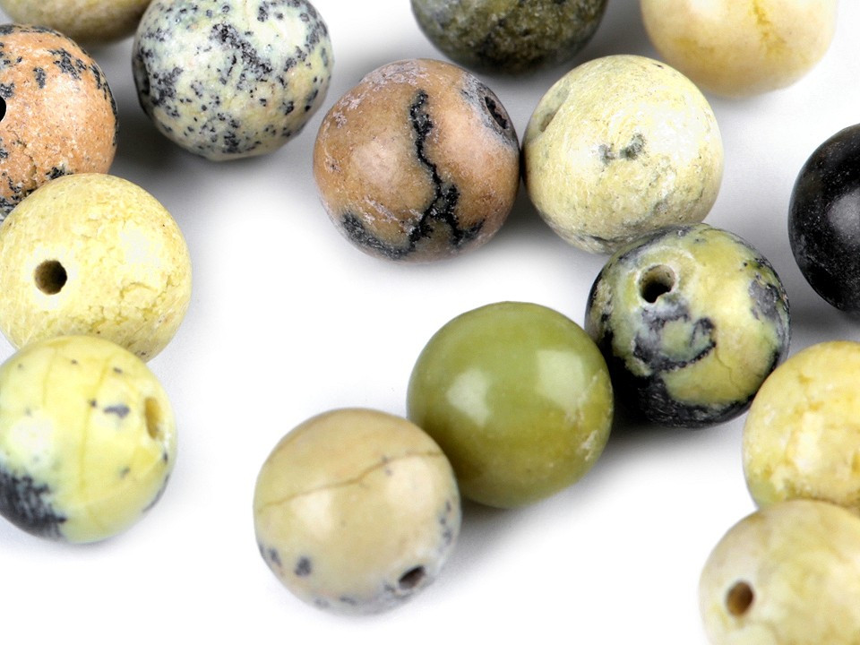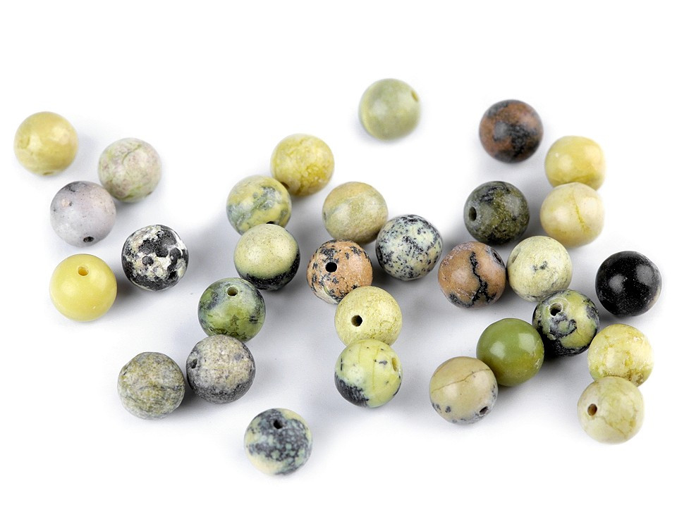 Přírodní minerálové korálky ze žlutého tyrkysu jsou oblíbené především šperkaři pro svou zajímavou kresbu a barvu. Svou velikostí jsou ideální na výrobu jemnějších Buddhových náramků. Jsou oblíbené na techniku drátování, v kombinaci s drahými kovy, ale i s obyčejnými drátky. Skvěle vypadají i na jednoduchých návlekových šňůrách , které svým přírodním složením ozvláštní.
